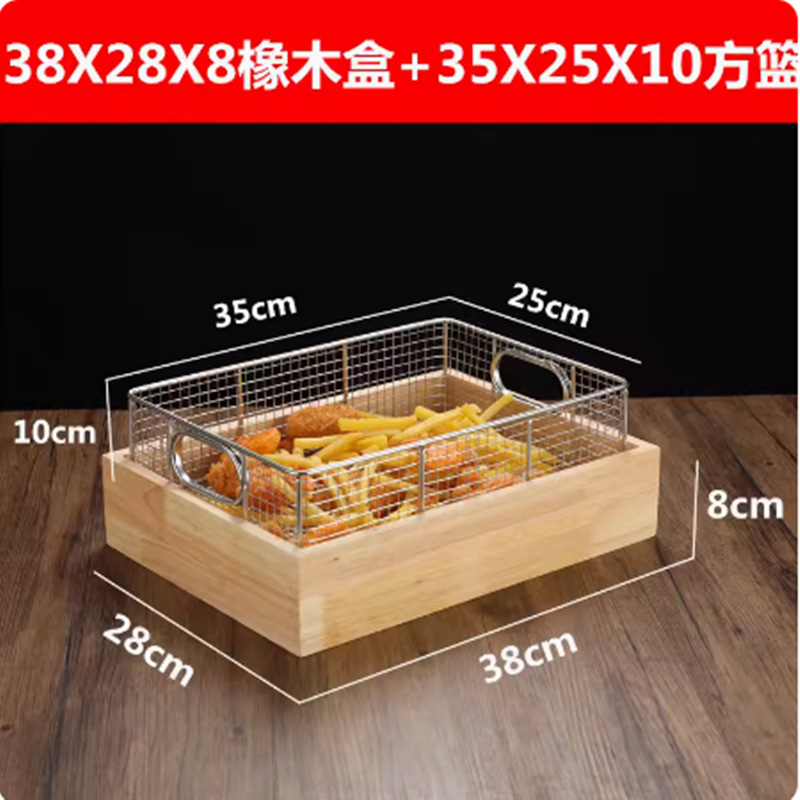 호텔 상업 뷔페 튀김 테이블 디스플레이 랙 나무 지원 스테인레스 스틸 과일 빵 바구니 오픈 디스플레이 식기 트레이스토어 가기