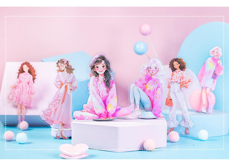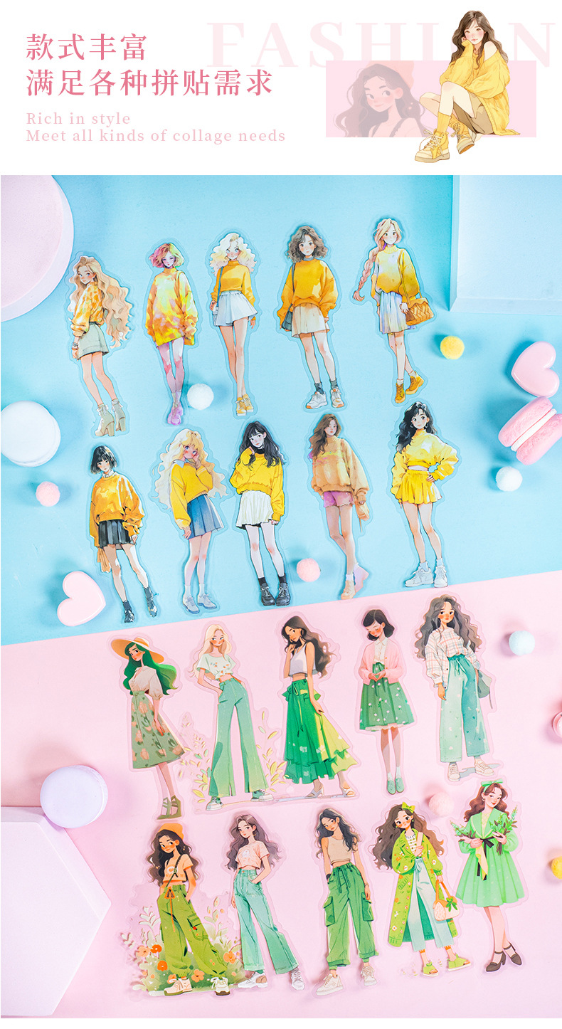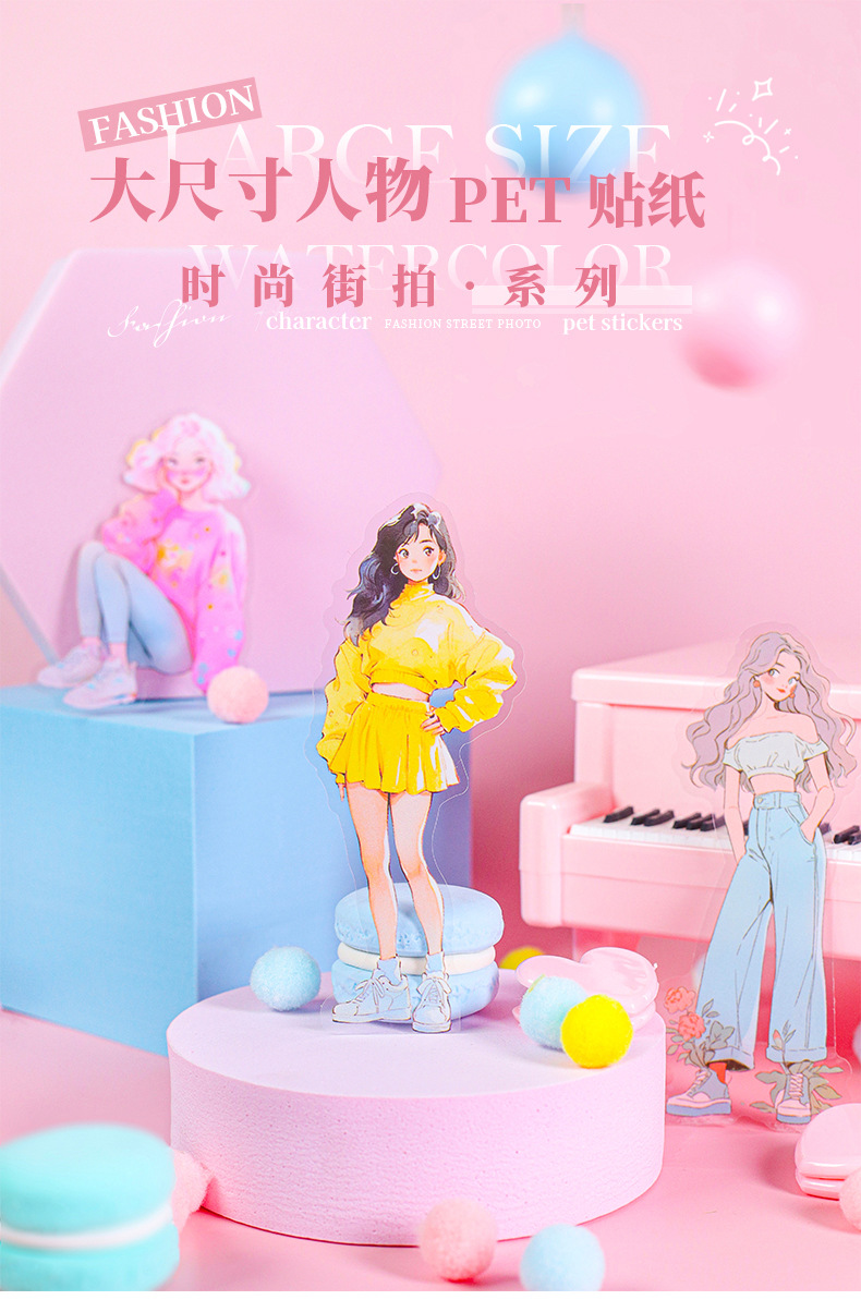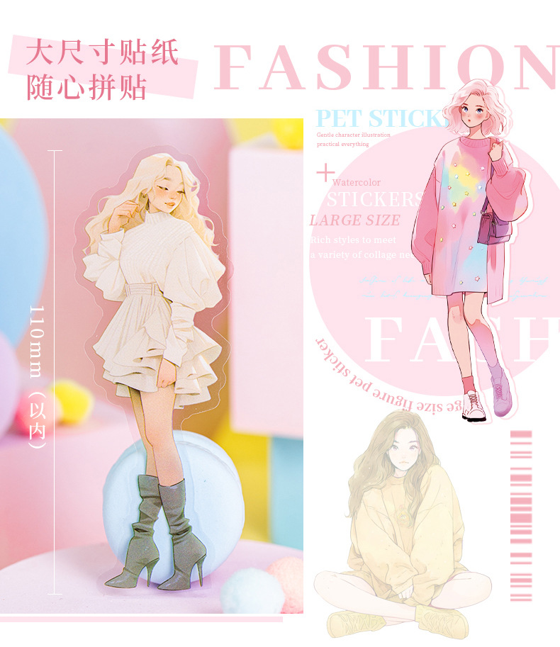 패션 거리 촬영 대형 그림 애완 동물 스티커 귀여운 패션 소녀 패턴 손 계정 장식 재료 스티커스토어 가기