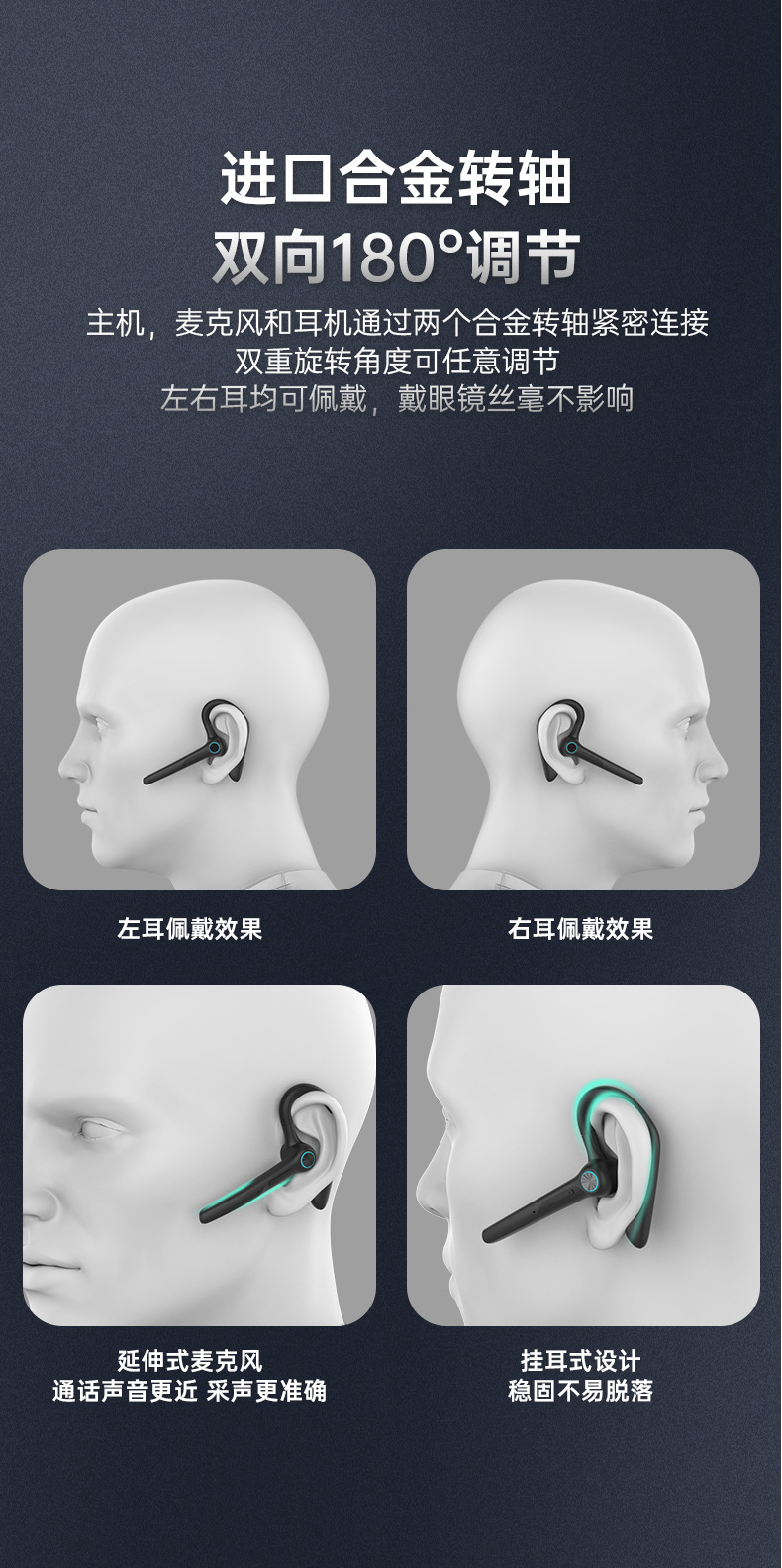 【产品特点】:跑步运动,开车通话,防汗防水,佩戴无胀痛。