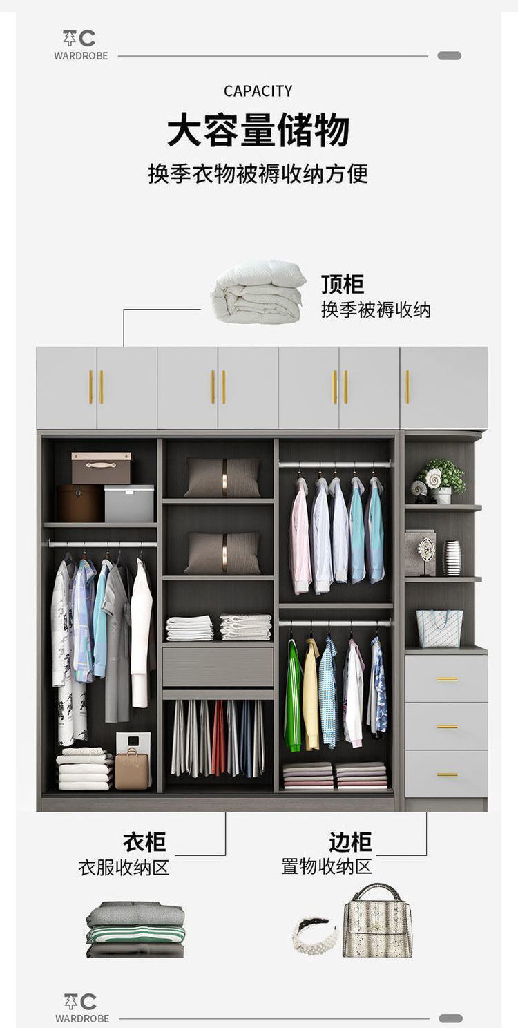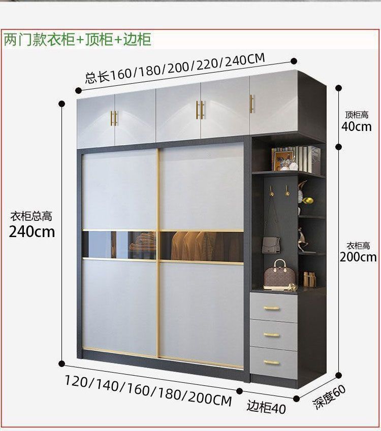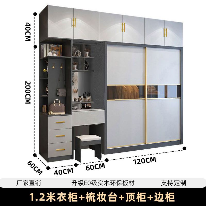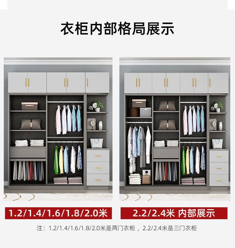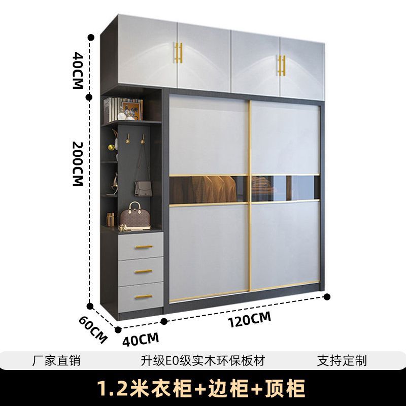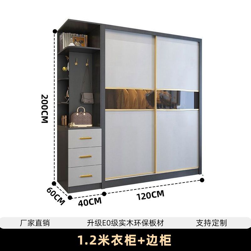 옷장 단단한 나무 가정용 침실 슬라이딩 도어 간단한 조립 캐비닛 작은 아파트 임대 주택 저장 어린이 옷장