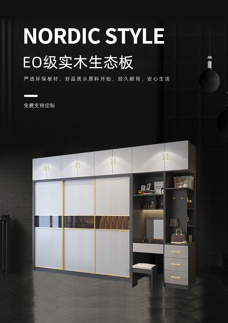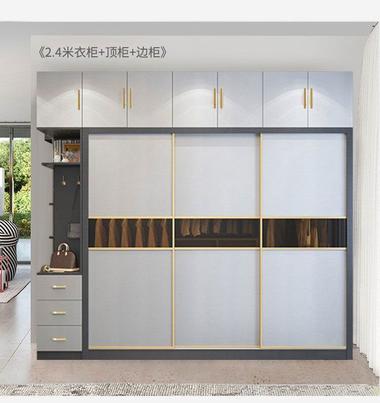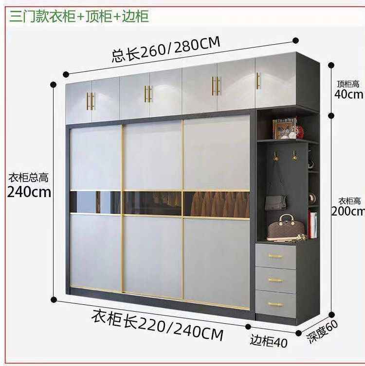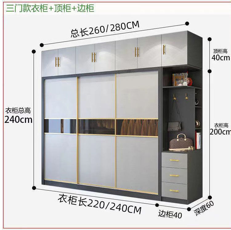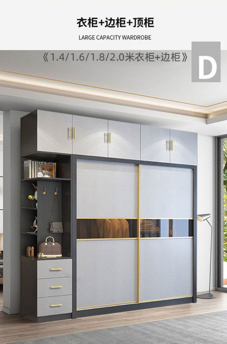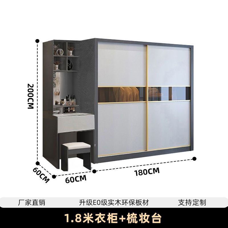 옷장 단단한 나무 가정용 침실 슬라이딩 도어 간단한 조립 캐비닛 작은 아파트 임대 주택 저장 어린이 옷장
