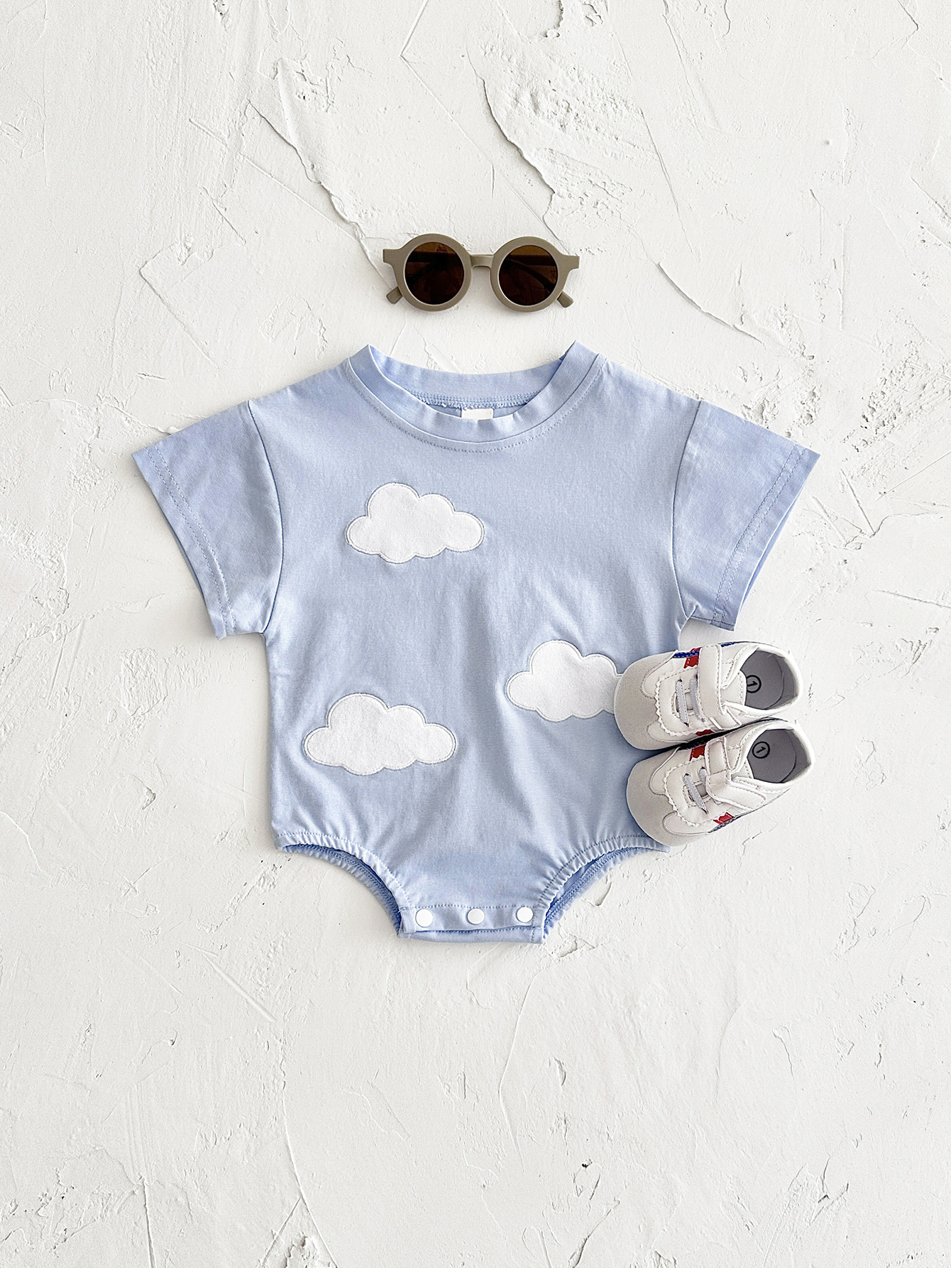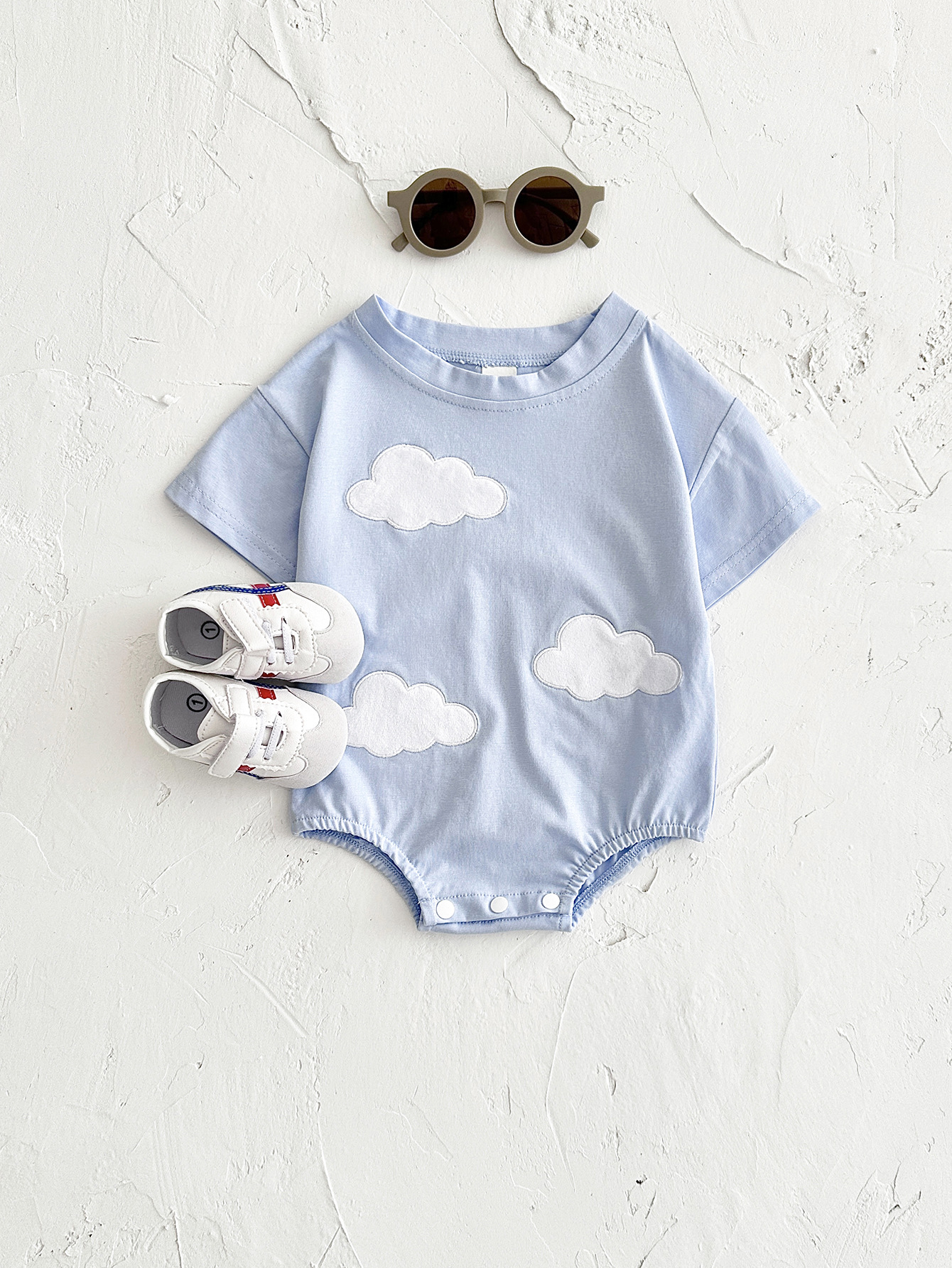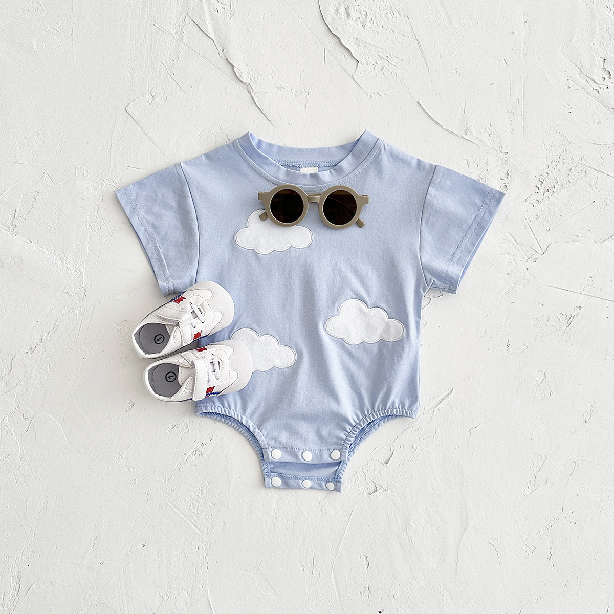 국경 간 여름 신생아 등반 세트 아기 구름 스티커 반팔 점프 수트 여름 점프 수트