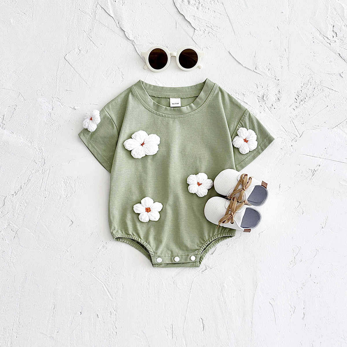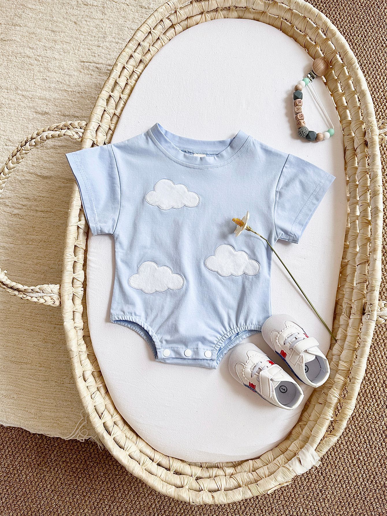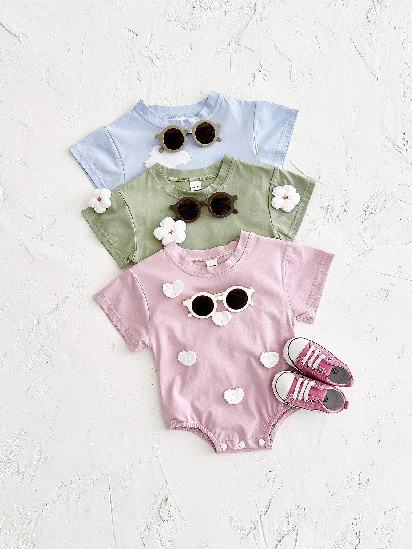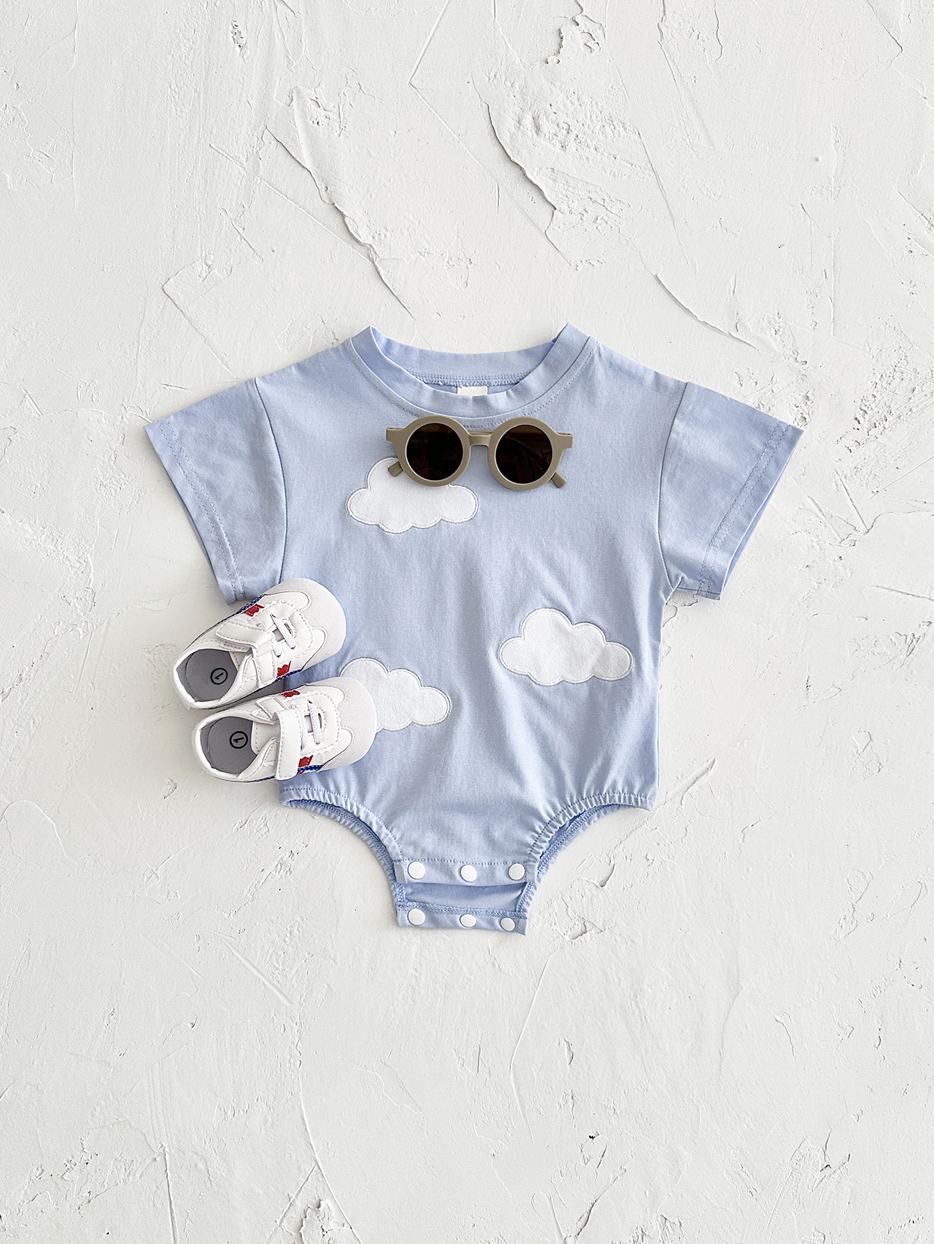 국경 간 여름 신생아 등반 세트 아기 구름 스티커 반팔 점프 수트 여름 점프 수트