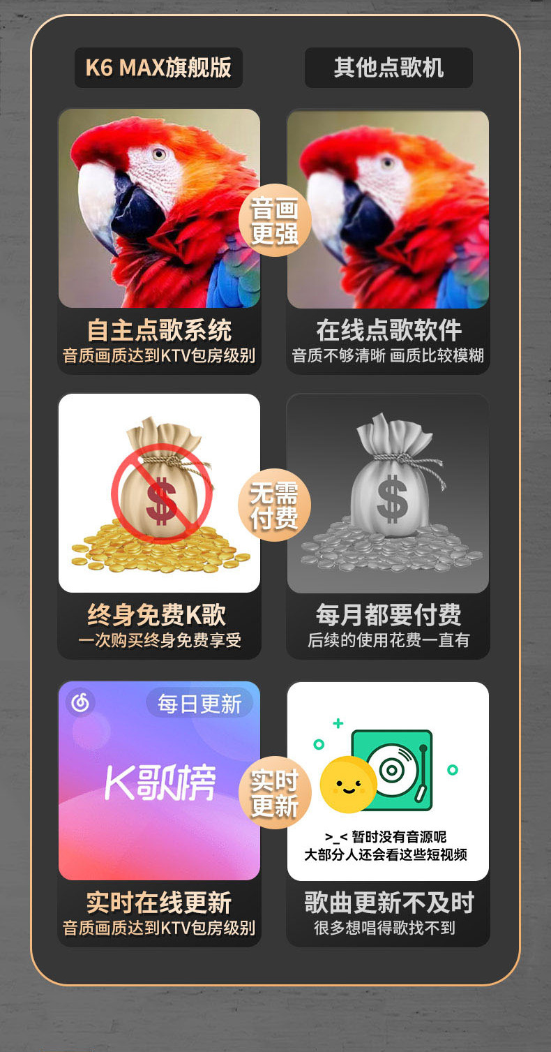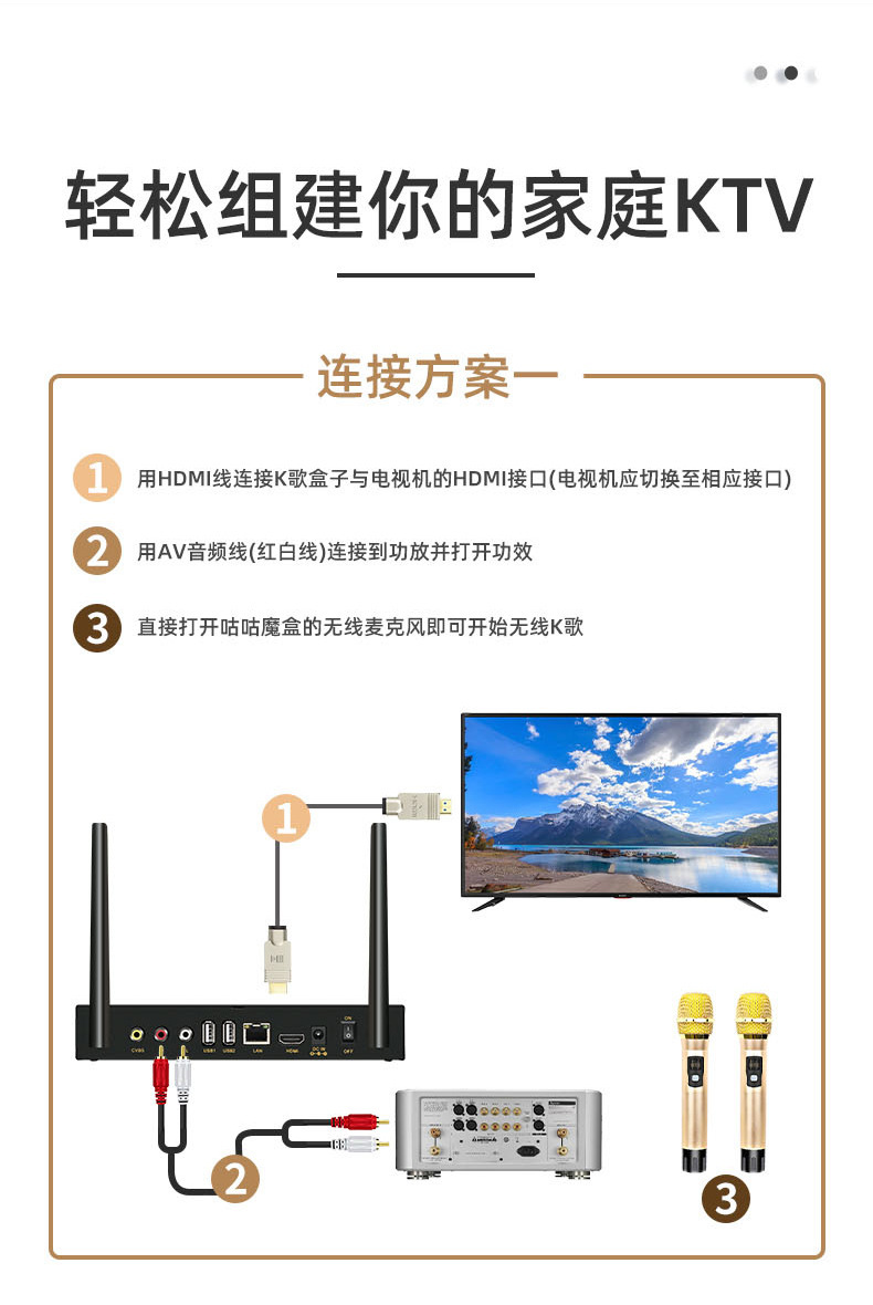 K6MAX带金属话筒套餐:K6MAX无线版主机*1+遥控器*1+HDMI转接线*1+三色莲花口转接线*1+金属话筒*2(内带18650电池)+18650充电仓*1