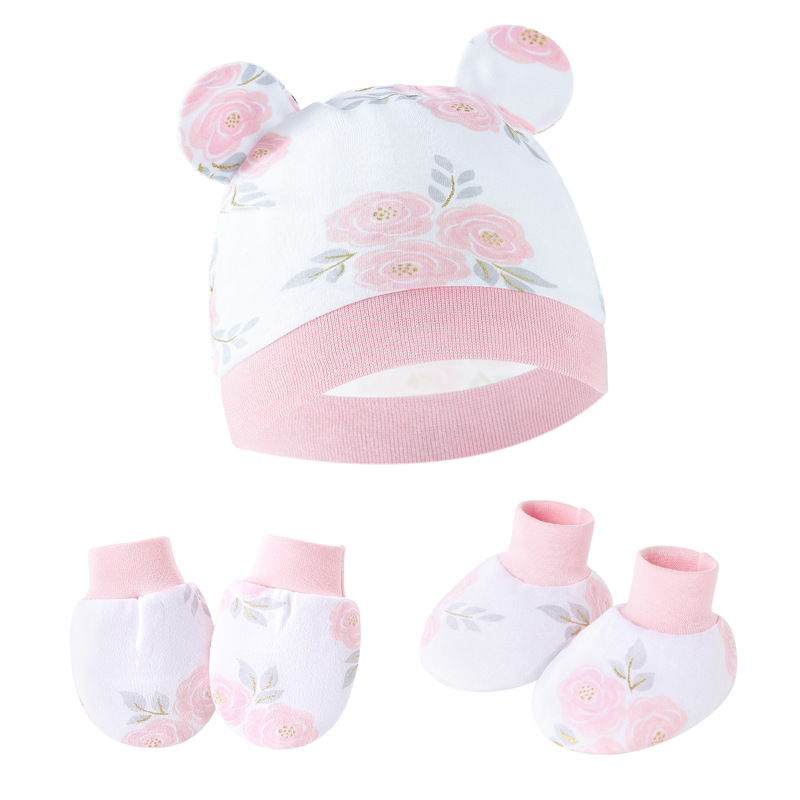 대외 무역 EU 신생아 태아 모자 아기 장갑 발 커버 아기 모자 안티 스크래치 장갑 3 피스 8908