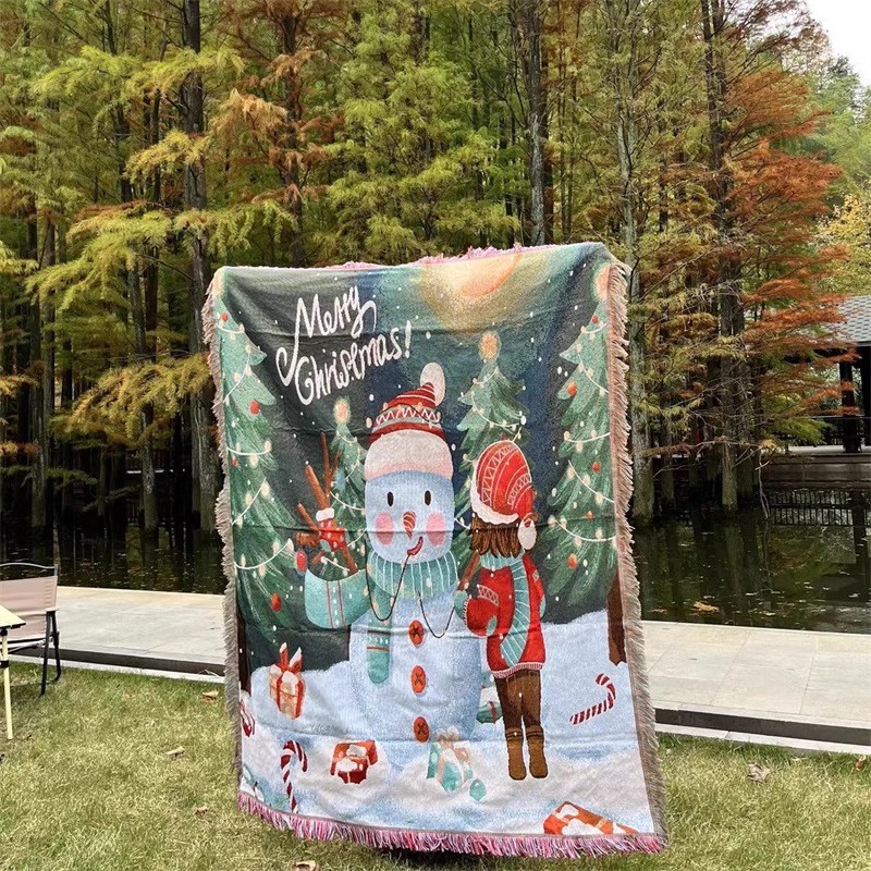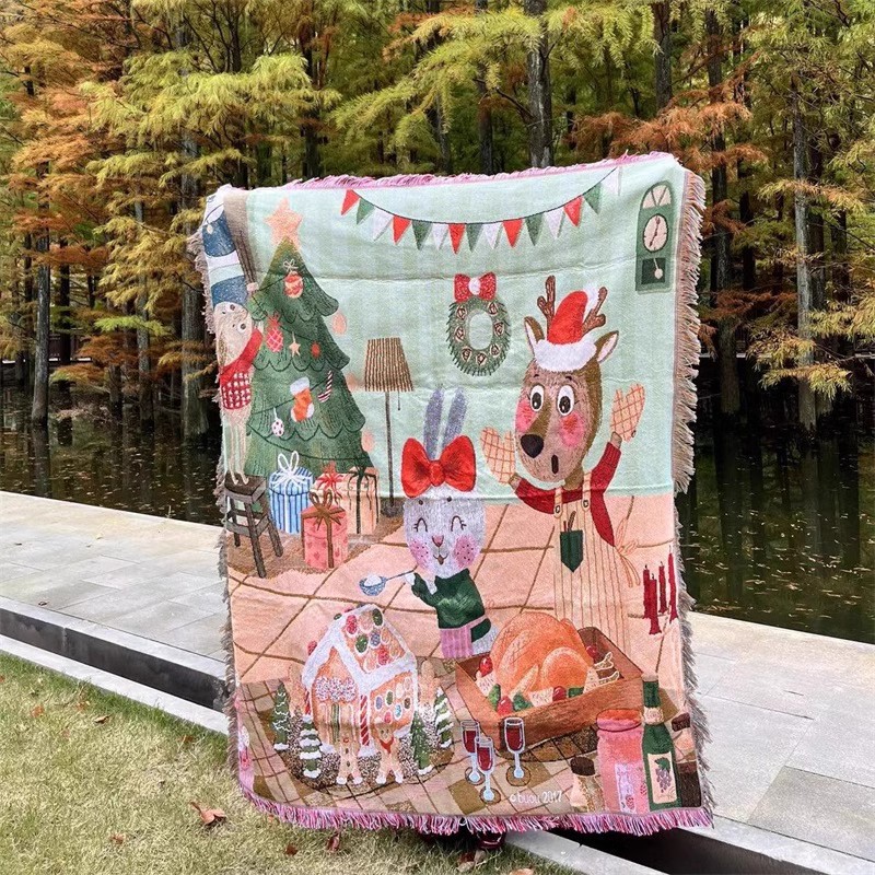 국경 2024 크리스마스 트리 매달린 천 크리스마스 태피스트리 다목적 장식 덮개 천 식탁보 실 담요 소파 타월