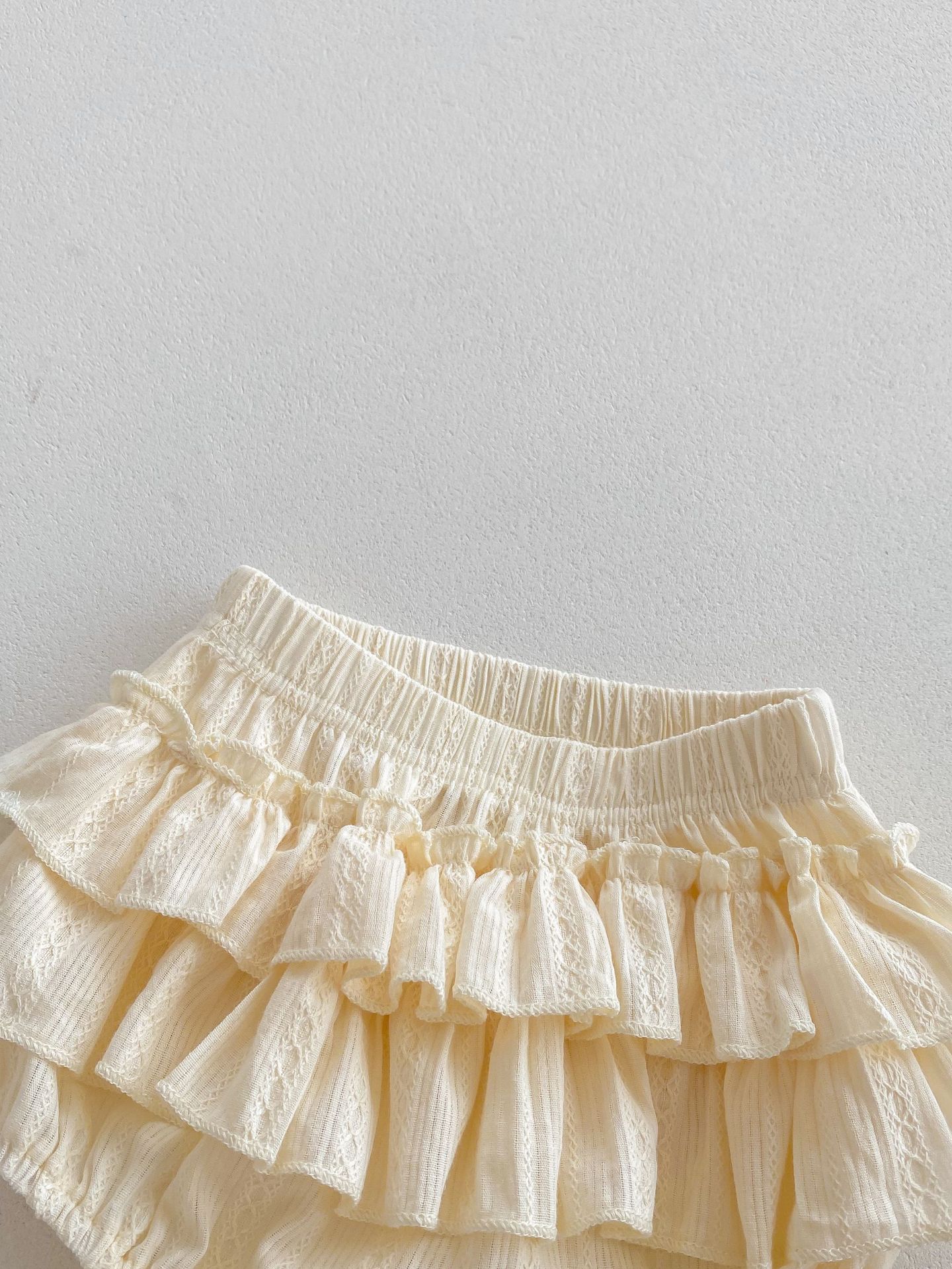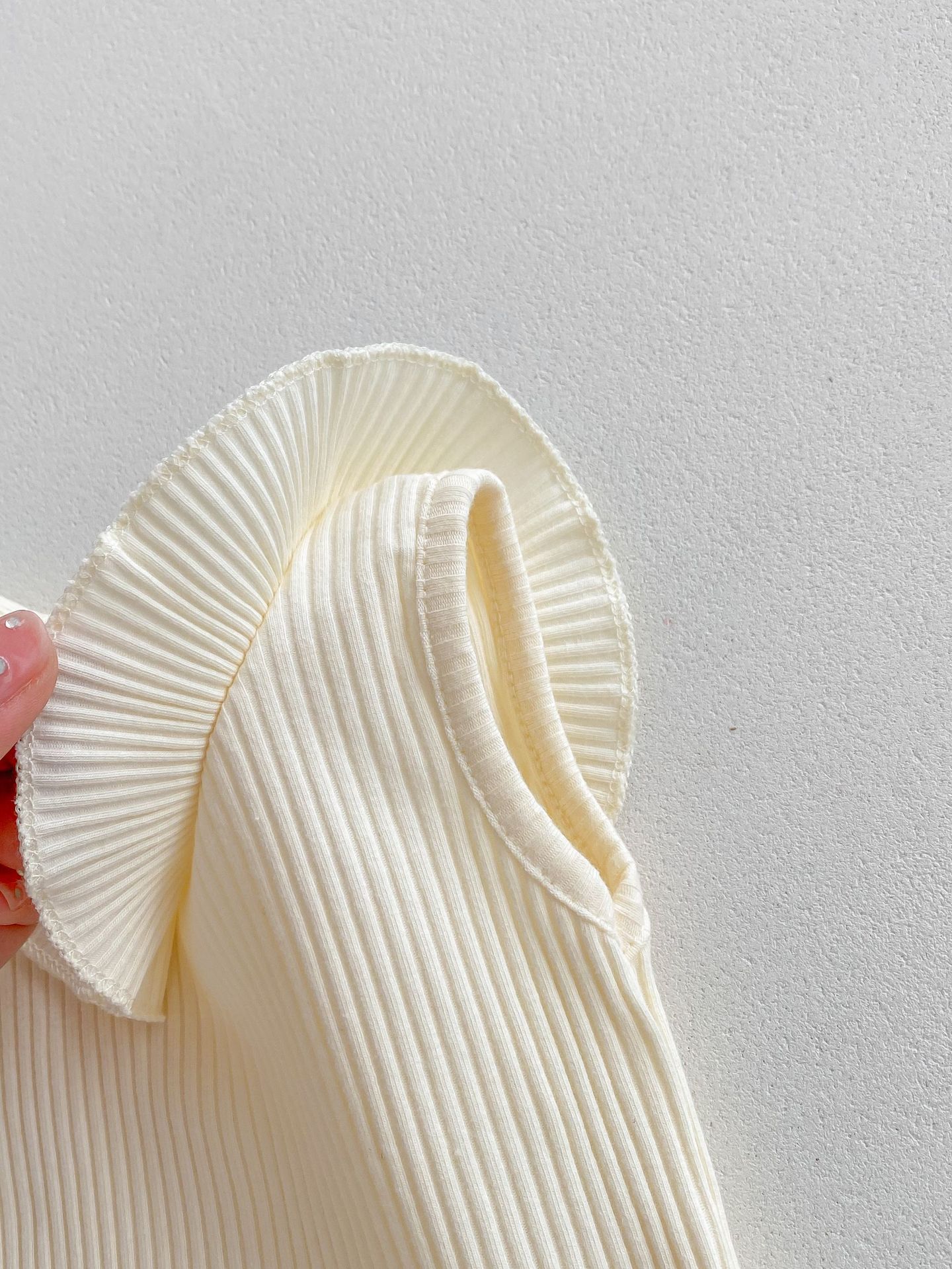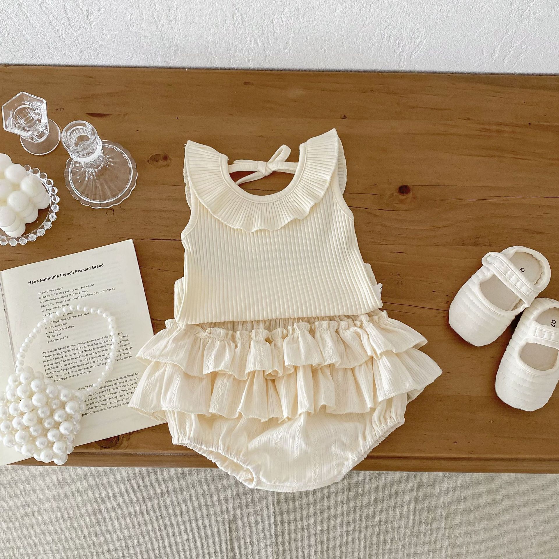 2025 한국판 아기 여름 백리스 민소매 프릴 칼라 상의 여자 아기 세트 공주 이중 레이어 원피스 바지스토어 가기