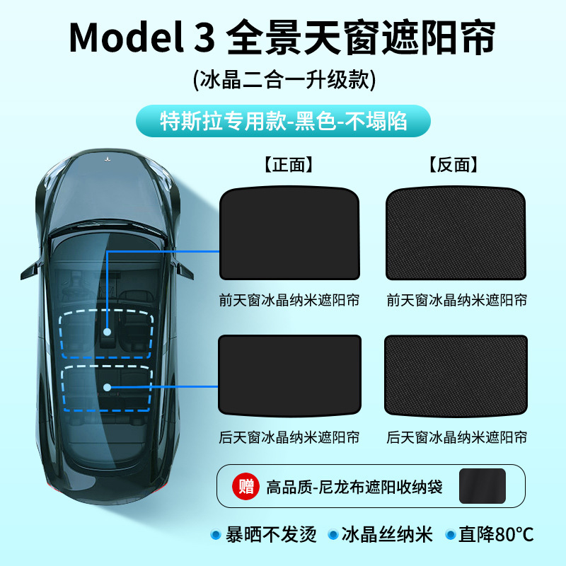 테슬라 모델 Y/3 밝게하는 얼음 크리스탈 차양 지붕 선 루프 패널 측면 창 단열 태양 보호에 적합스토어 가기