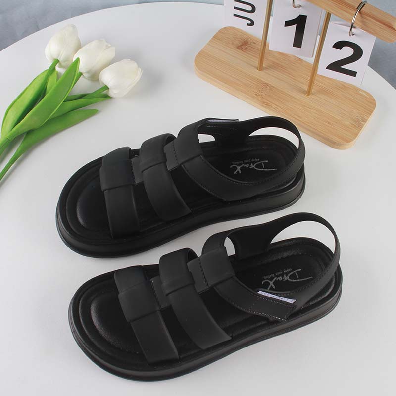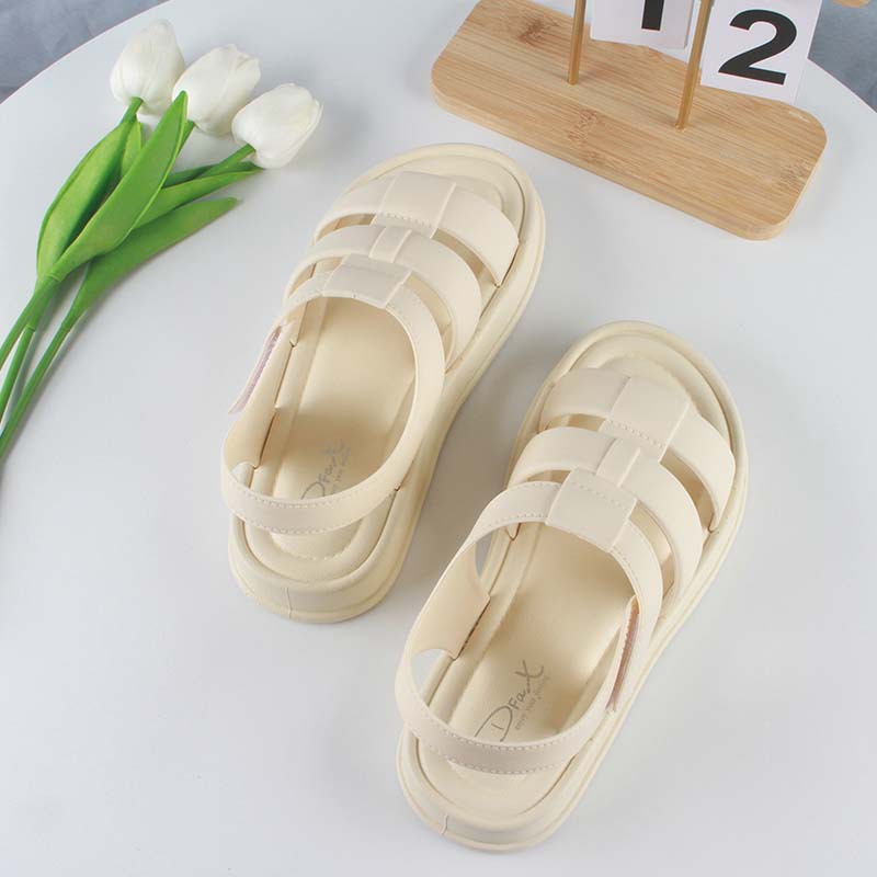 패션 여성의 여름 외부 착용 샌들 할로우 솔리드 컬러 플랫 비치 샌들 캐주얼 벨크로 여성 신발