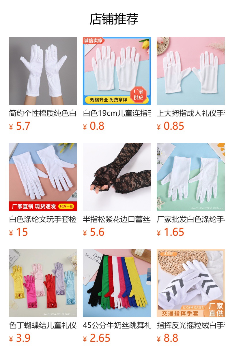 17cm 흰색 어린이 에티켓 장갑 간단한 얇은 문화 놀이 장갑 댄스 파티 공연 의상 매칭 장갑스토어 가기