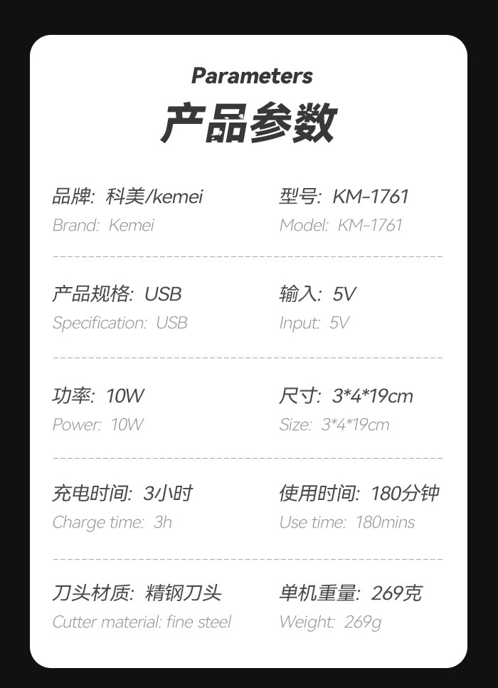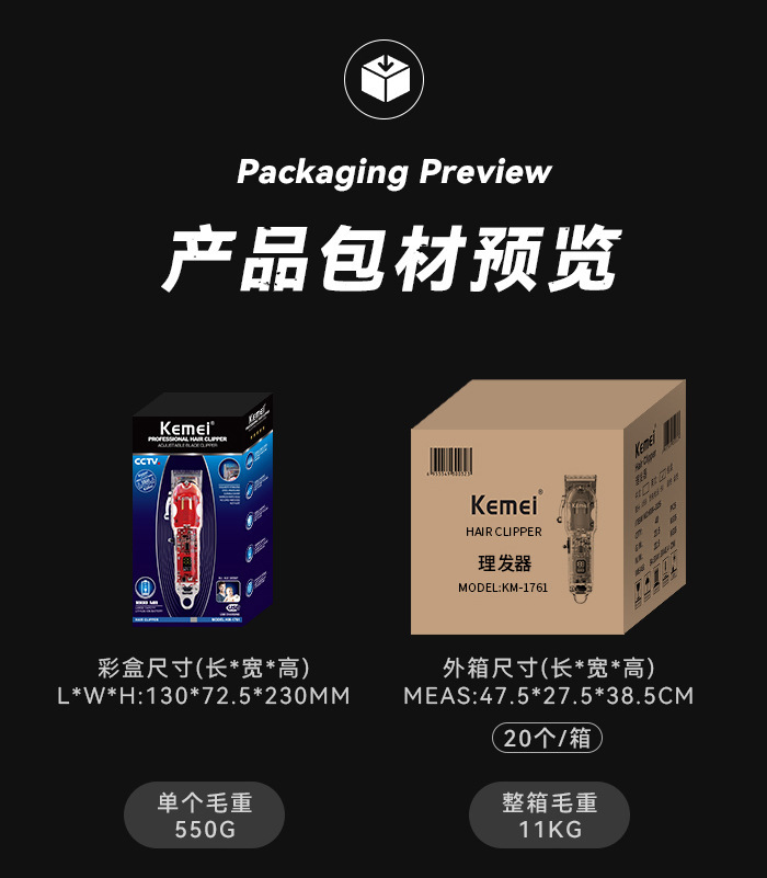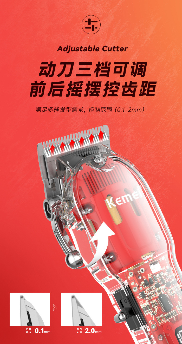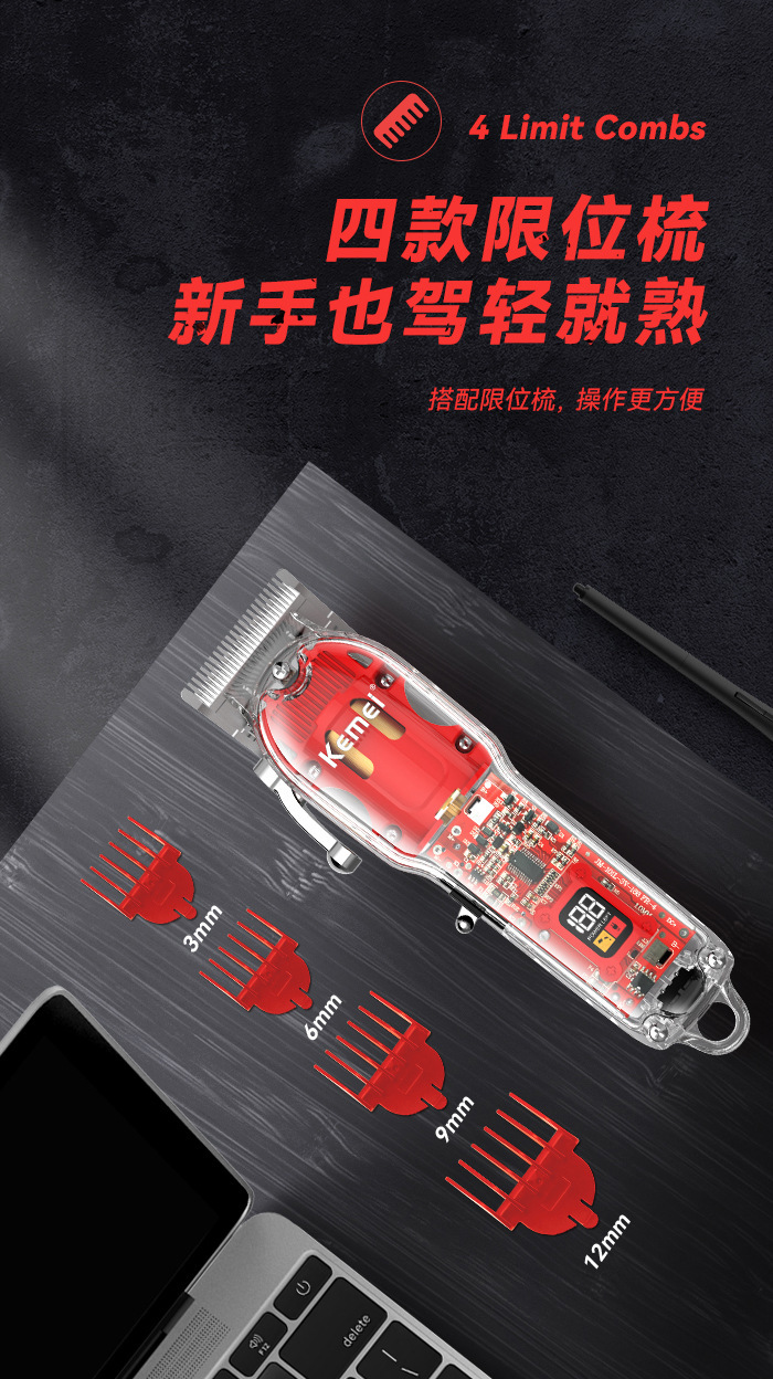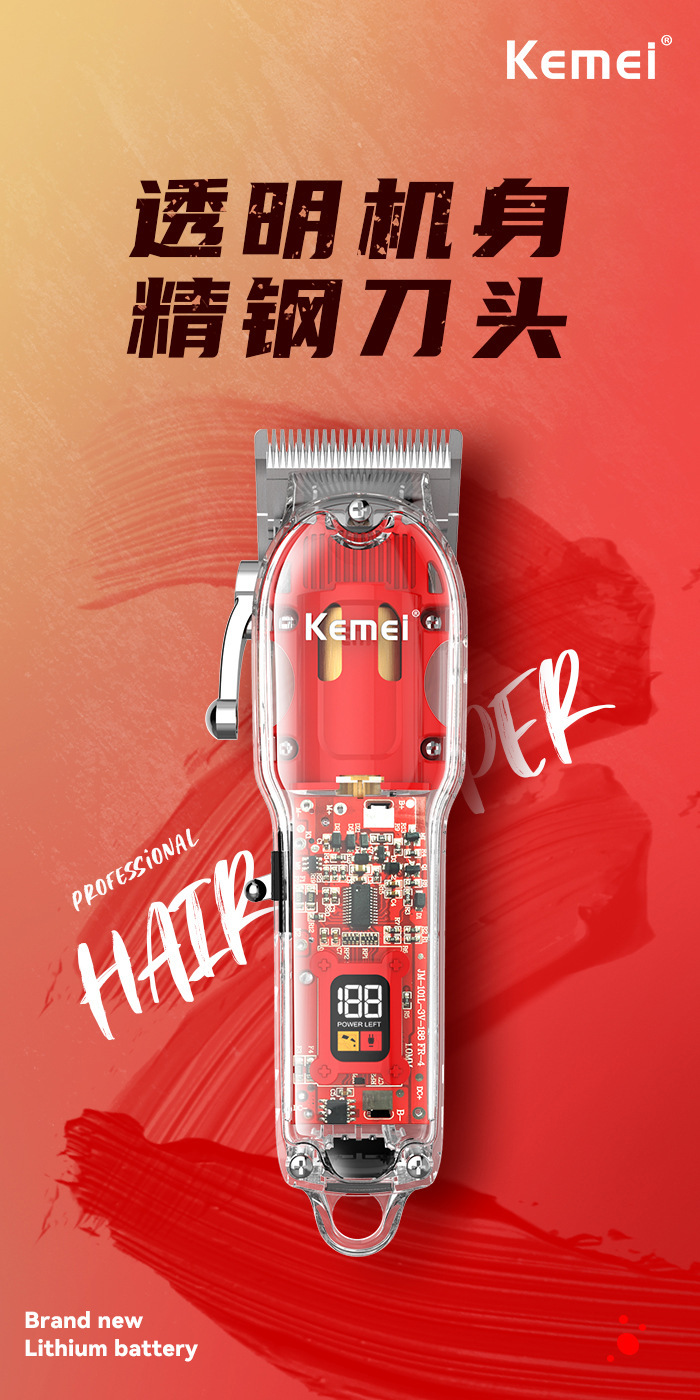 Kemei KM-1761 헤어 클리퍼 전문 전기 면도 투명 바디 고출력 헤어 클리퍼 헤어 클리퍼