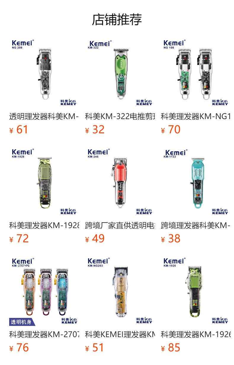 Kemei KM-1761 헤어 클리퍼 전문 전기 면도 투명 바디 고출력 헤어 클리퍼 헤어 클리퍼스토어 가기