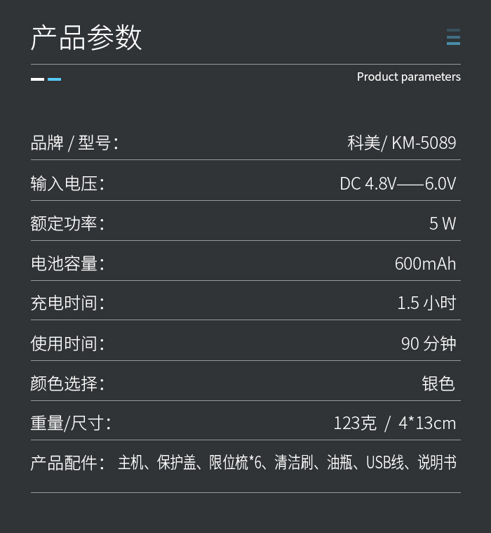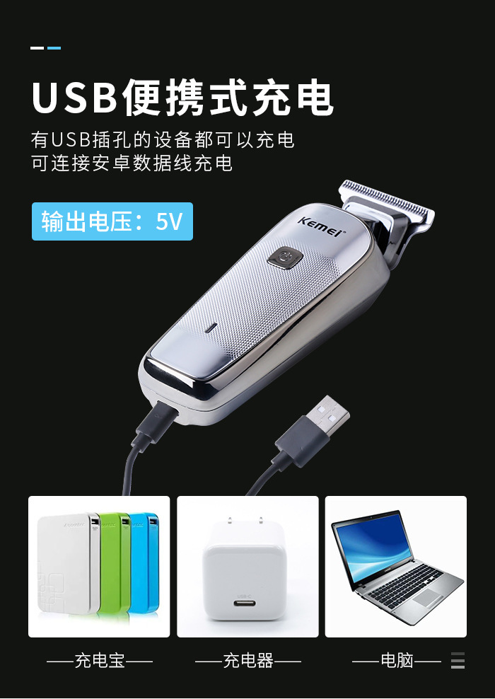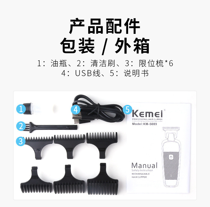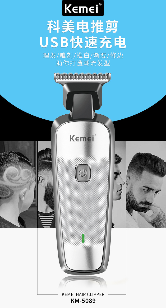 Kemei 헤어 클리퍼 KM-5089 소형 바디 헤어 커터 USB 빠른 충전 헤어 살롱 가정용 전기 클리퍼