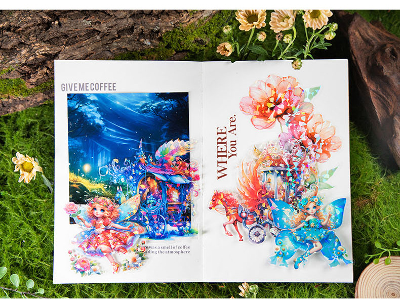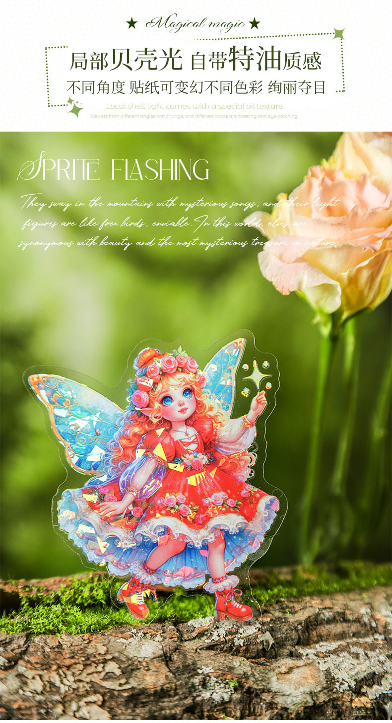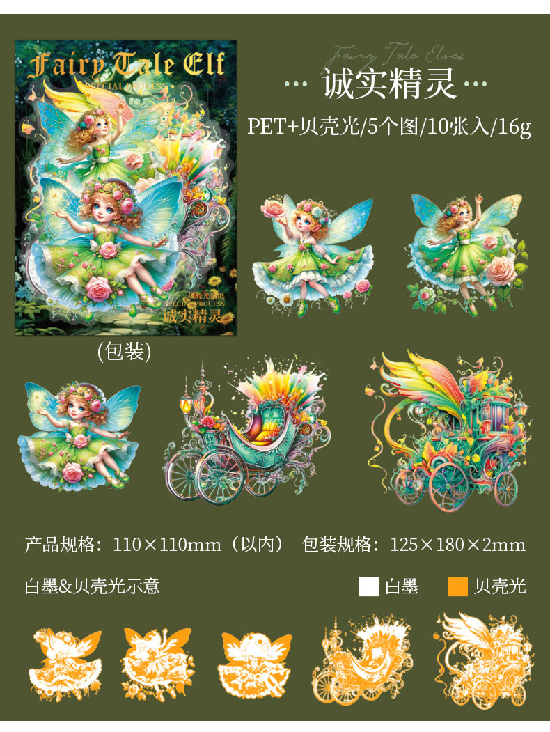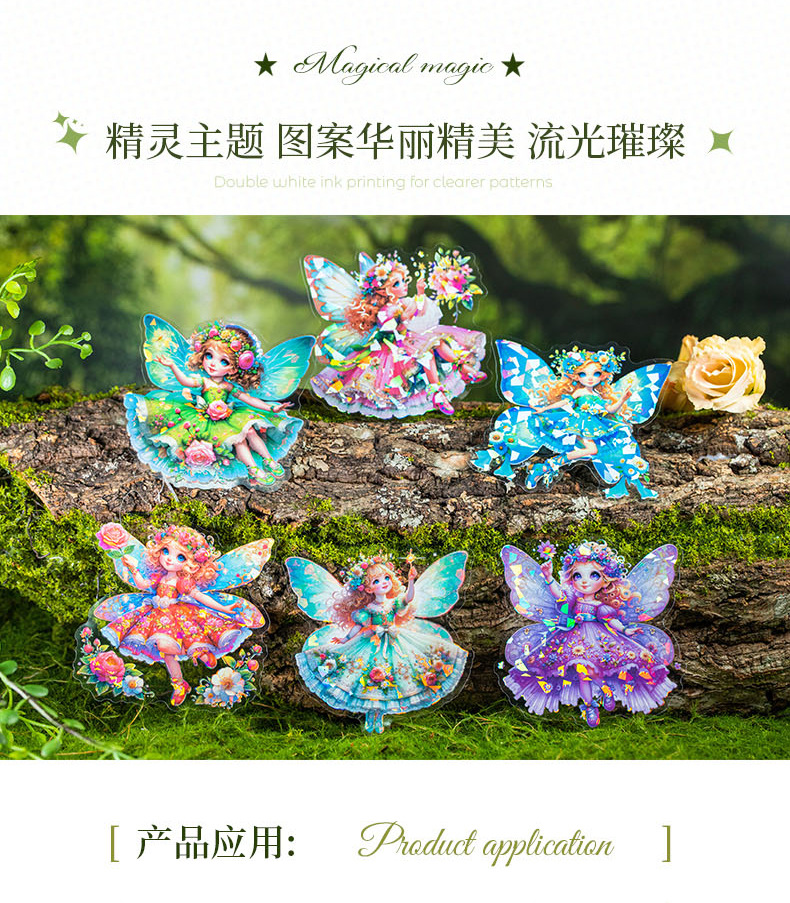 요정 엘프 쉘 라이트 PET 스티커 귀여운 엘프 손 계정 스티커 다이 컷 손 계정 풍경 콜라주