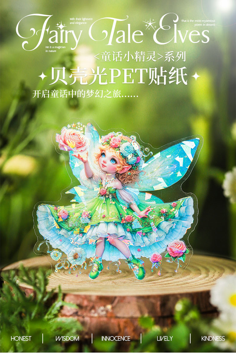 요정 엘프 쉘 라이트 PET 스티커 귀여운 엘프 손 계정 스티커 다이 컷 손 계정 풍경 콜라주스토어 가기
