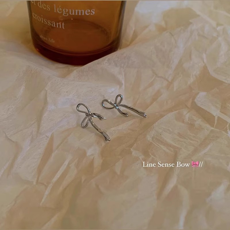 간단한 라인 활 귀걸이 여성용 하이 엔드 라이트 럭셔리 우아한 귀걸이 귀걸이 귀 구멍이없는 우아한 귀걸이스토어 가기