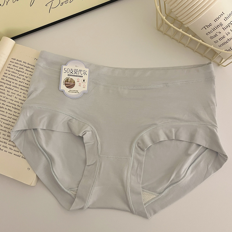 모달 팬티 여성의 2024 새로운 추적없는 실크 세균성 바닥 크로트 미드 하이 허리 소녀 젊은 삼각형 반바지 배치