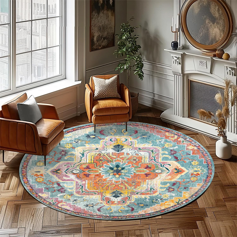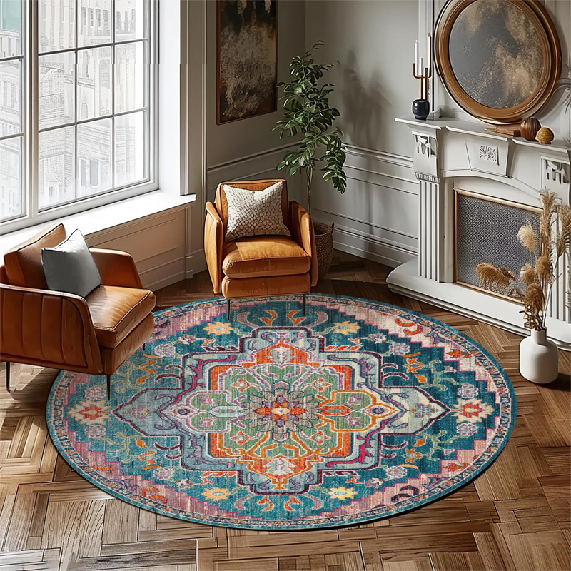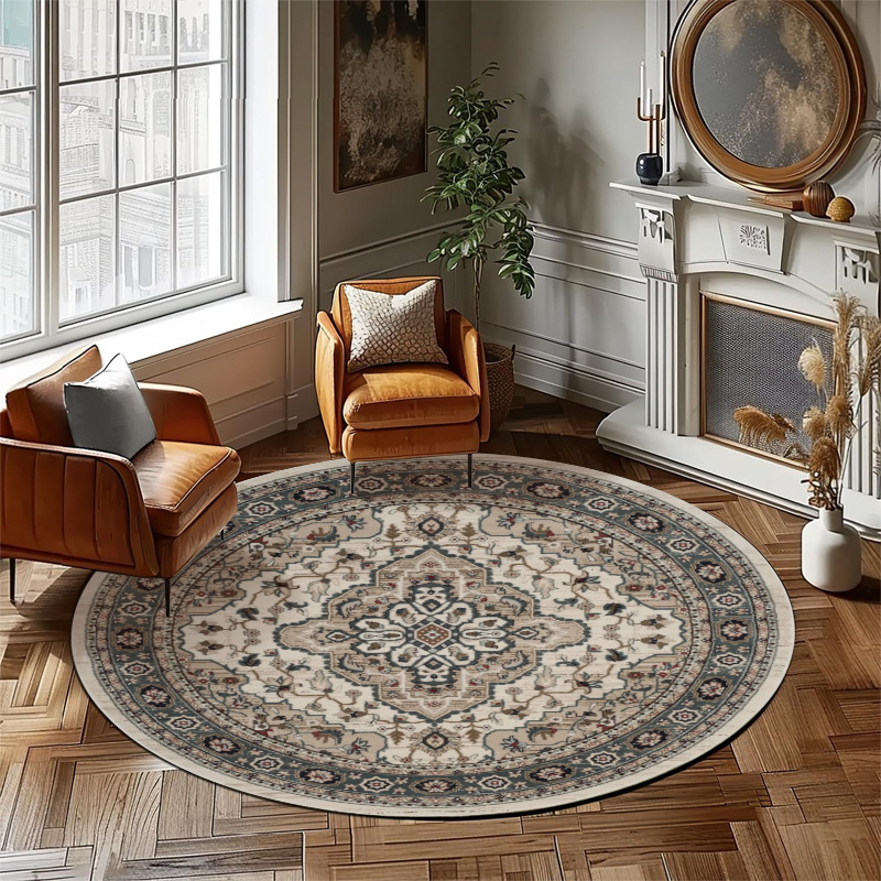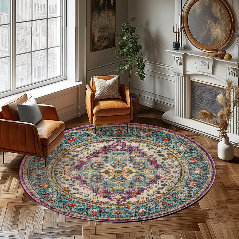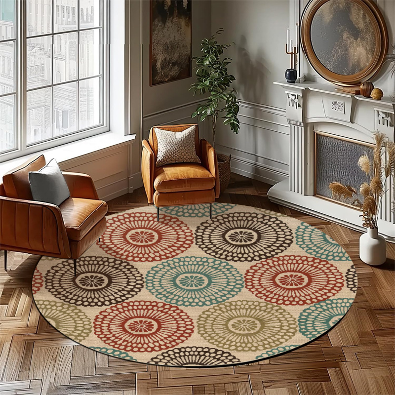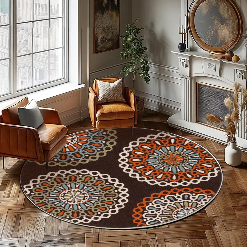 새로운 라운드 유럽 레트로 카펫 거실 대형 지역 풀 소파 커피 테이블 매트 야외 테라스 매트