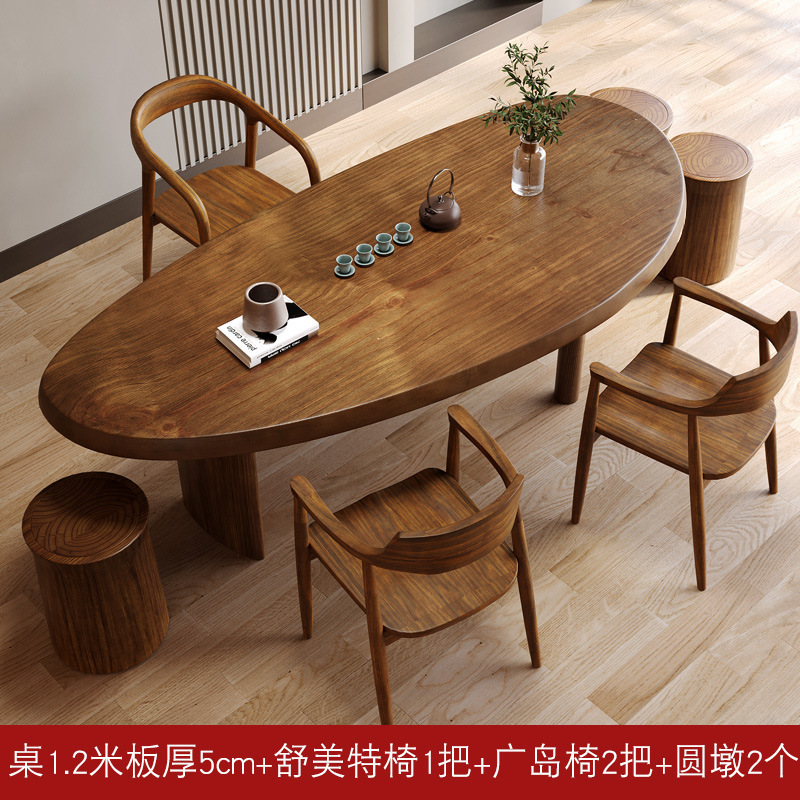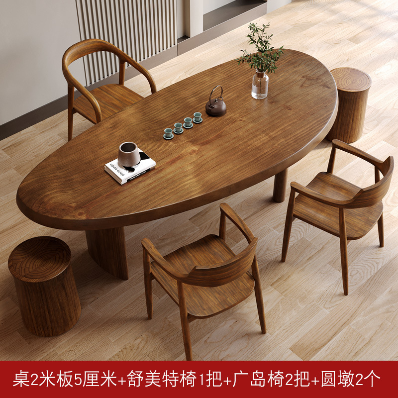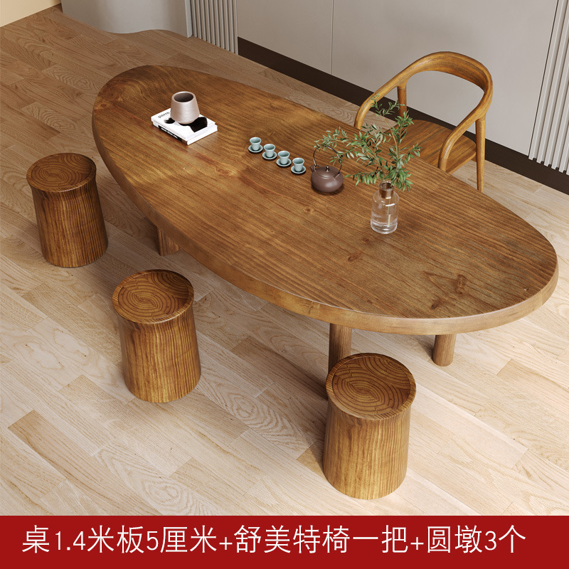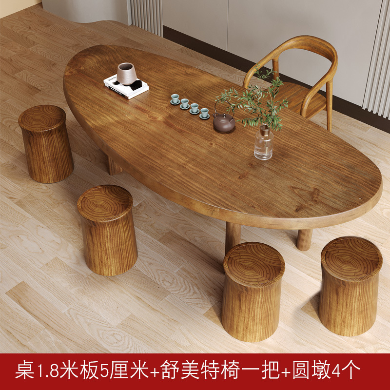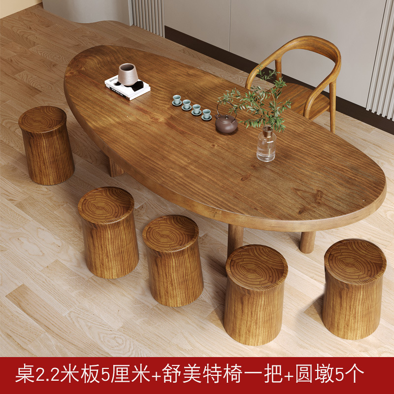 거실 가정용 통나무 차 테이블 커피 테이블 발코니 사무실 리셉션을위한 단단한 나무 곡선 차 테이블과 의자 조합 차 테이블스토어 가기