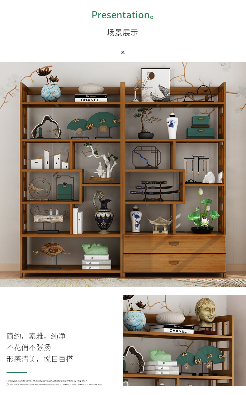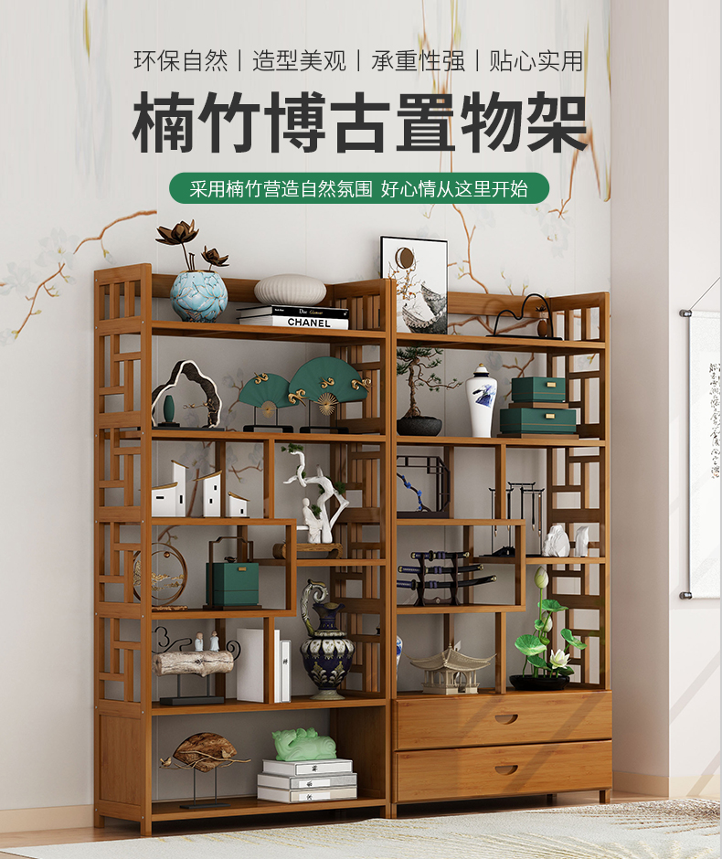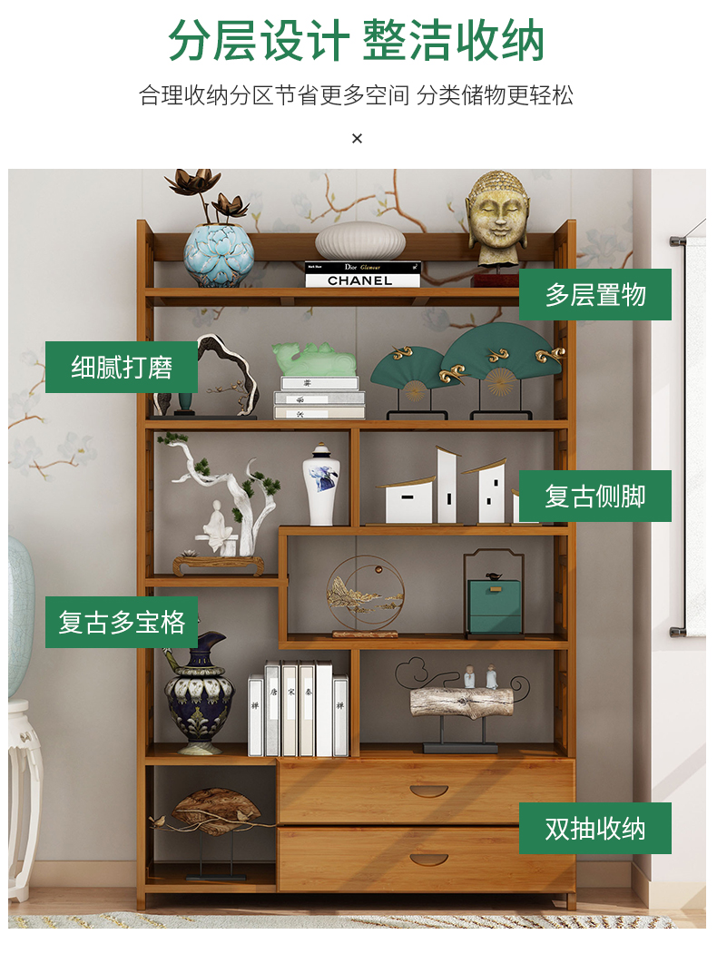 새로운 중국 스타일 Duobao Pavilion 골동품 랙 차 디스플레이 캐비닛 거실 골동품 작은 장식품 저장 랙 파티션 Zheng zhi스토어 가기