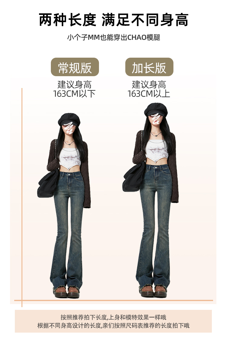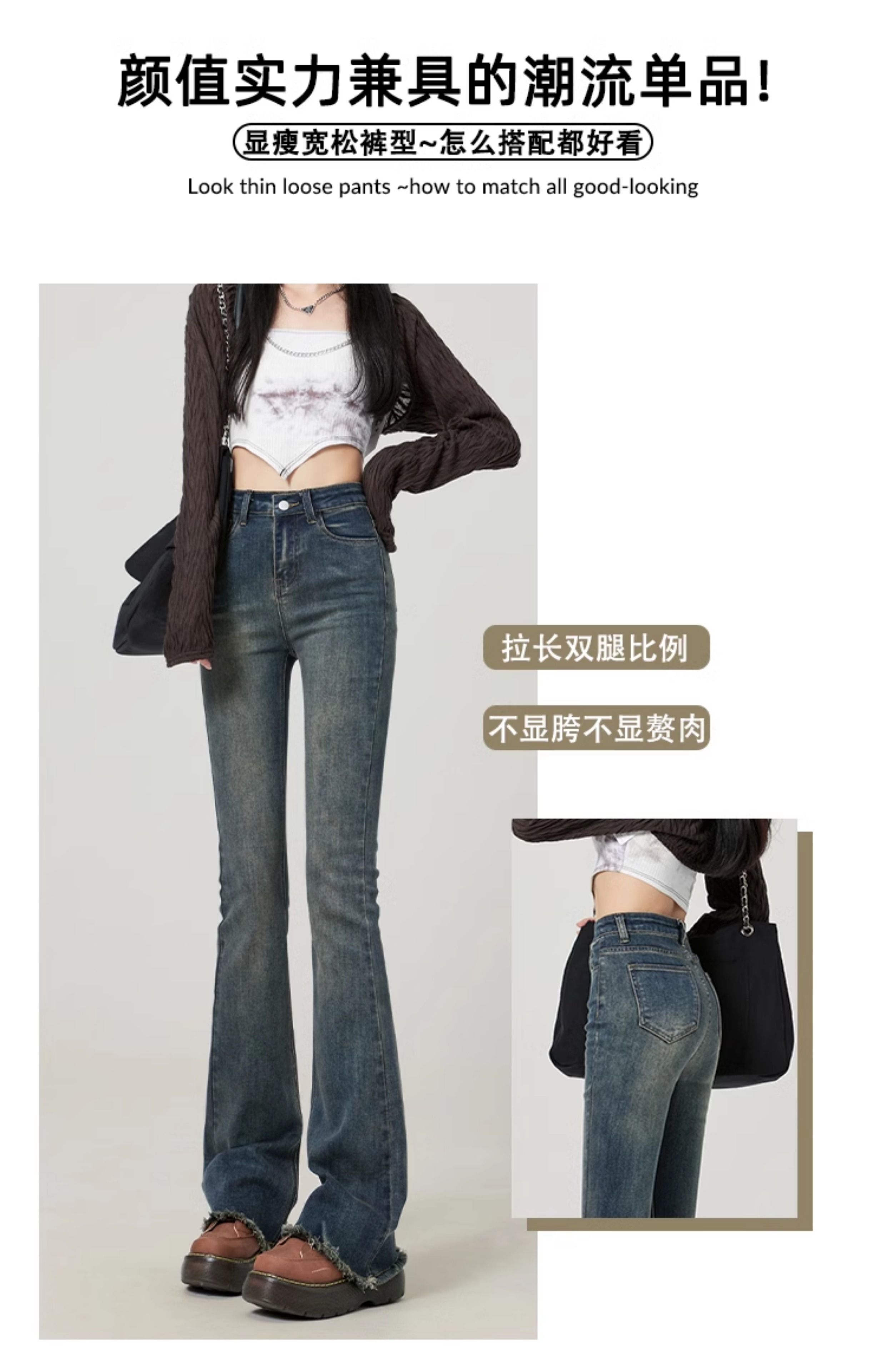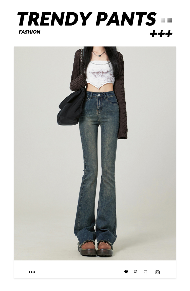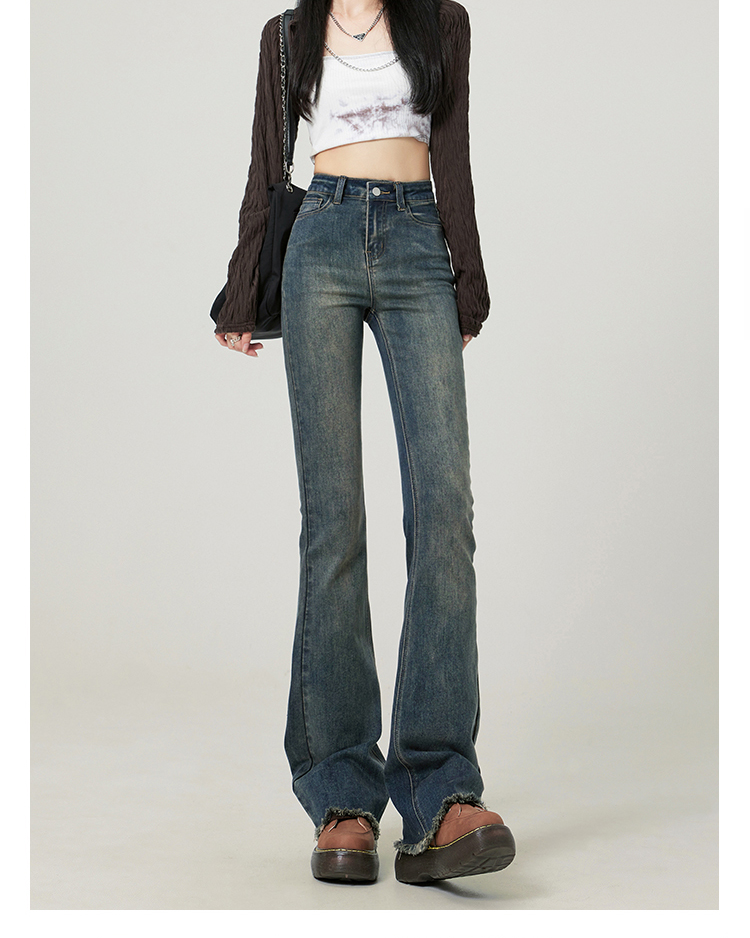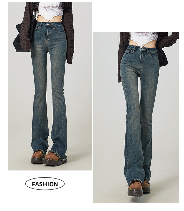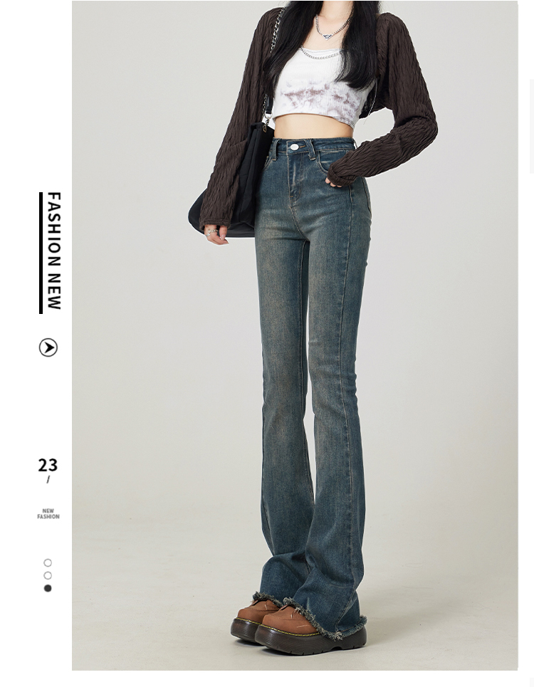 높은 허리 플라 드 청바지 여성의 2024 년 여름 새로운 시멘트 그레이 슬림 핏 슬림 말굽 바지 박차스토어 가기