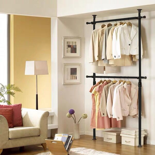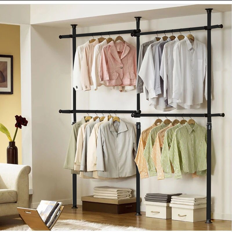 가려운 옷 랙 가정용 바닥 침실 걸이 펀칭하지 않는 망원경 막대 발코니 보관 건조 Zheng스토어 가기