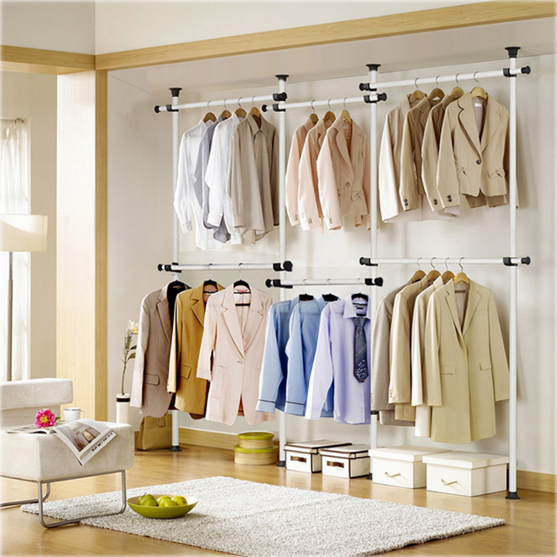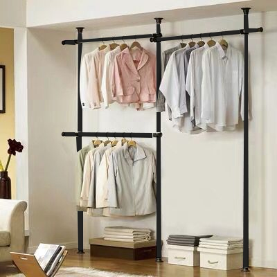 가려운 옷 랙 가정용 바닥 침실 걸이 펀칭하지 않는 망원경 막대 발코니 보관 건조 Zheng