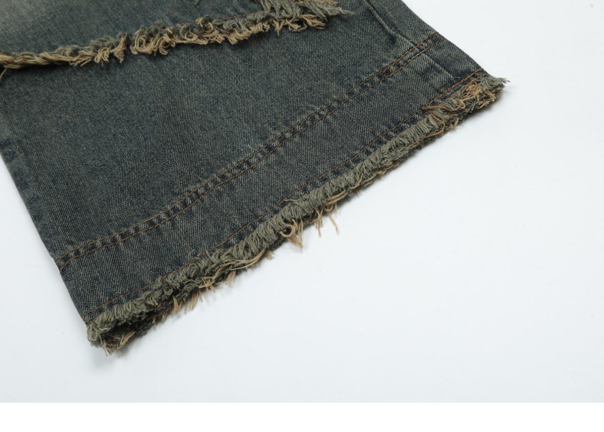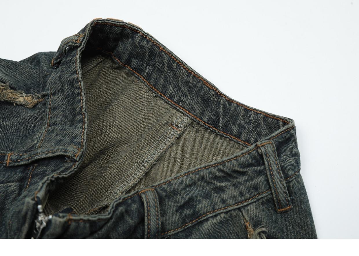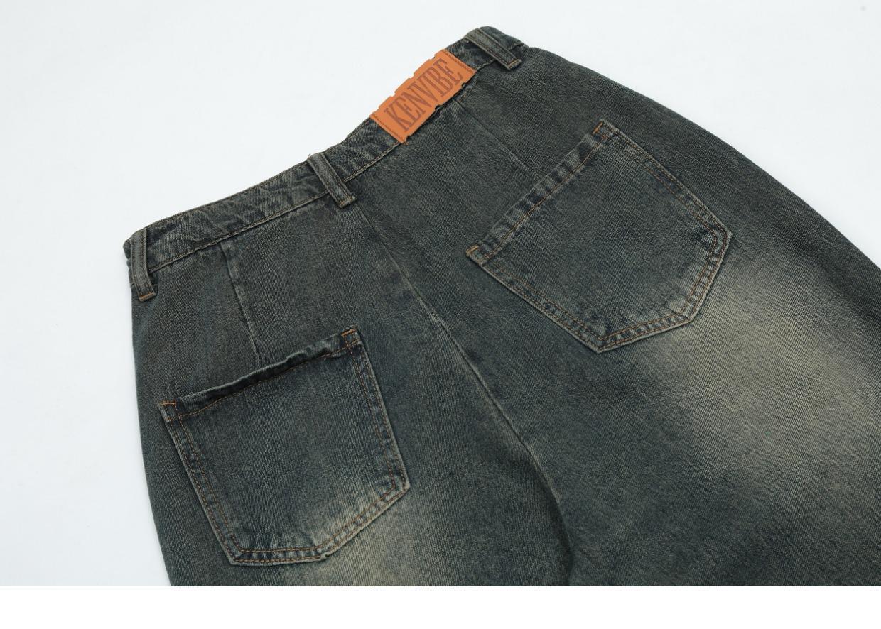 아메리칸 스타일 빈티지 멀티 포켓 스타 래플 청바지 남성과 여성의 패션 브랜드 느슨하게 씻은 오래된 넓은 다리 바지 여름