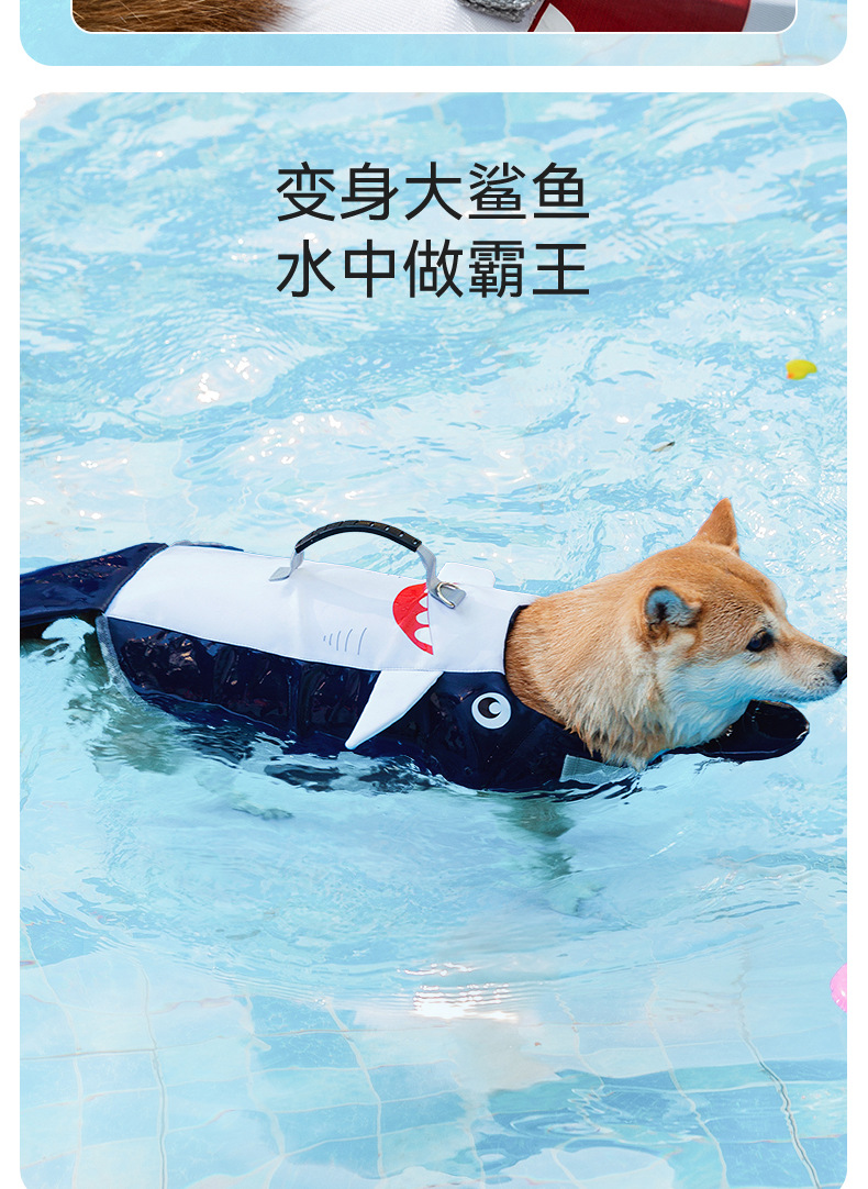 2024 새로운 국경 간 개 상어 애완 동물 구명 조끼 중소 규모의 개 부력 수영복 수영복스토어 가기