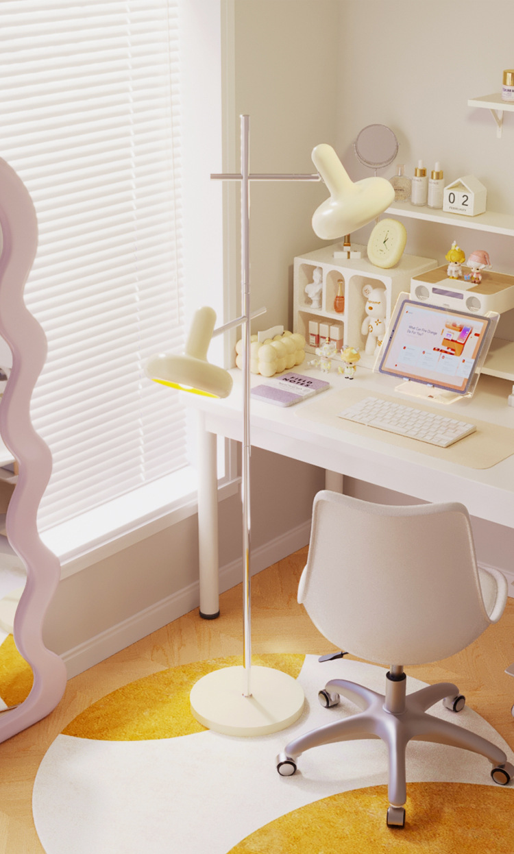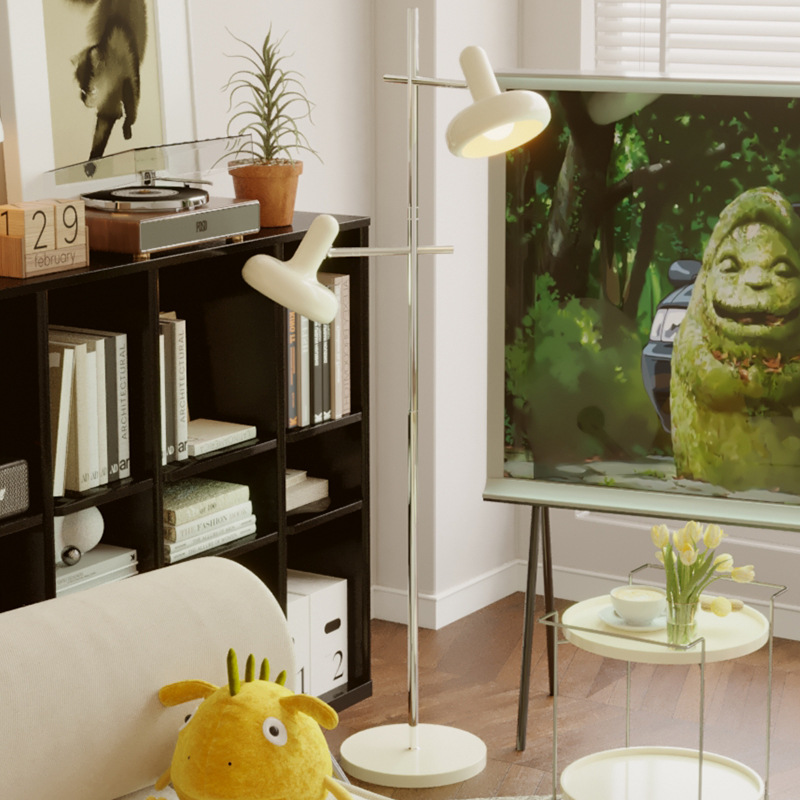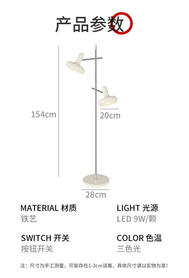 중세 bauhaus 플로어 램프 거실 소파 코너 더블 헤드 램프 전체 스펙트럼 눈 보호 독서 크림 바람 침대 옆 램프