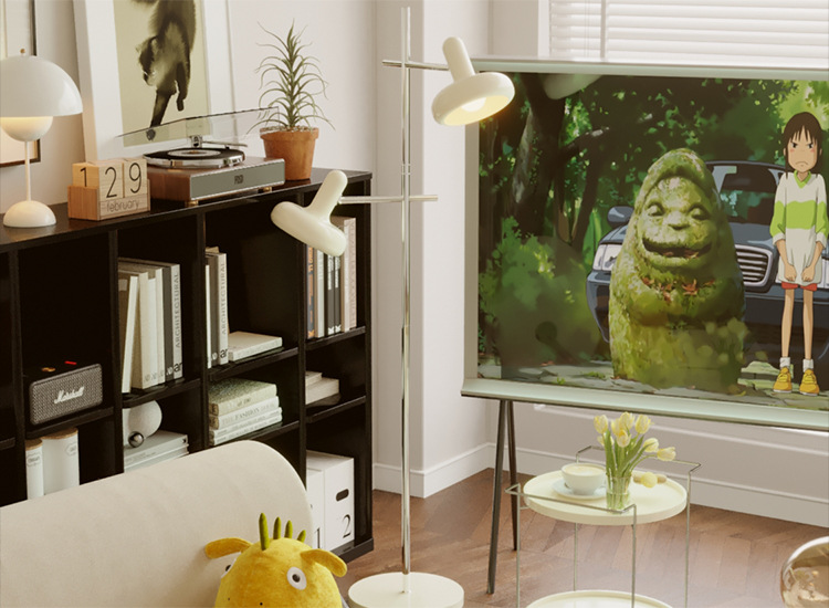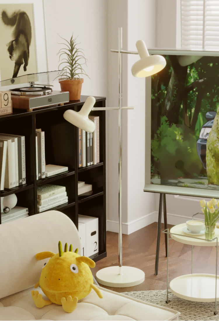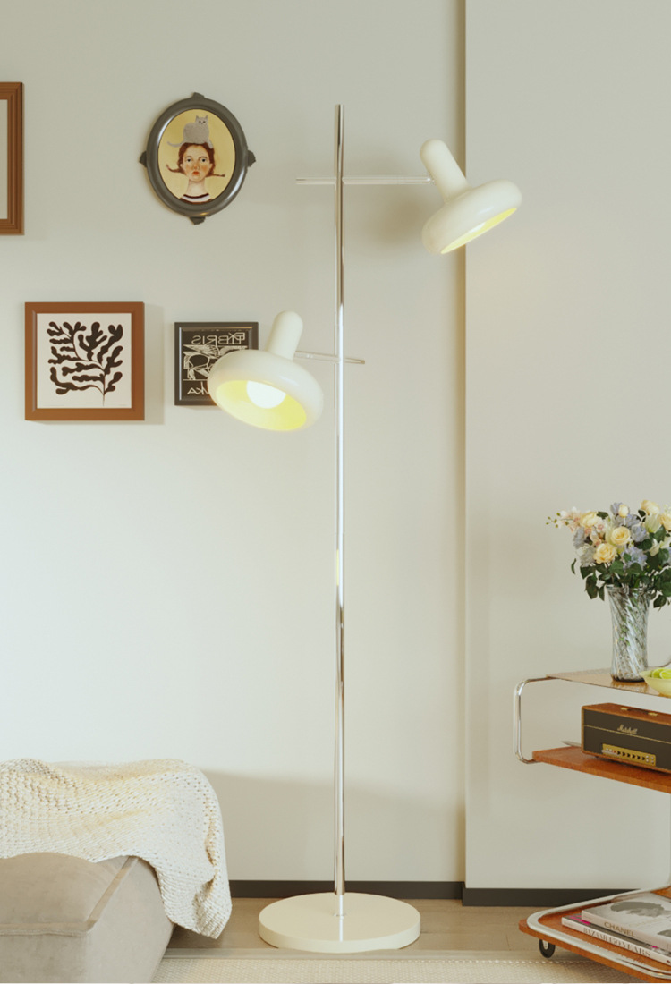 중세 bauhaus 플로어 램프 거실 소파 코너 더블 헤드 램프 전체 스펙트럼 눈 보호 독서 크림 바람 침대 옆 램프스토어 가기
