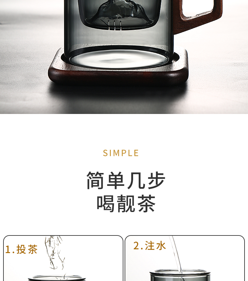 티컵 개인 특별 차 물 분리 차 관람 산 컵 남자 사무실 유리 물 컵 고급 차 정지