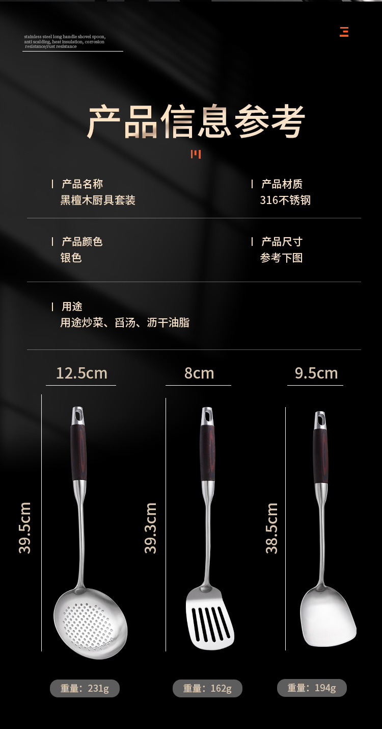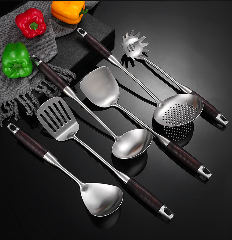 316 나무 손잡이 절단기 가정용 수프 스푼 볶음 삽을 두껍게 한 큰 숟가락 긴 손잡이 Colander 스테인레스 스틸 주방용품 세트