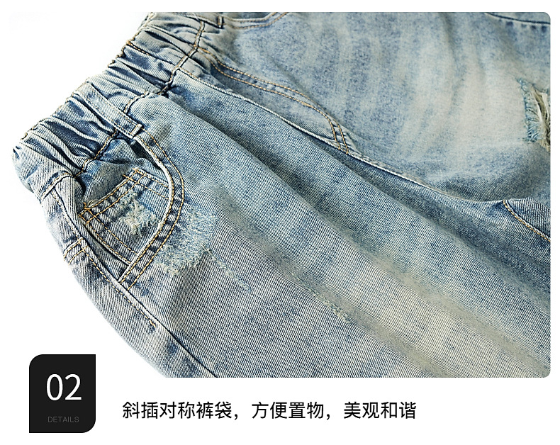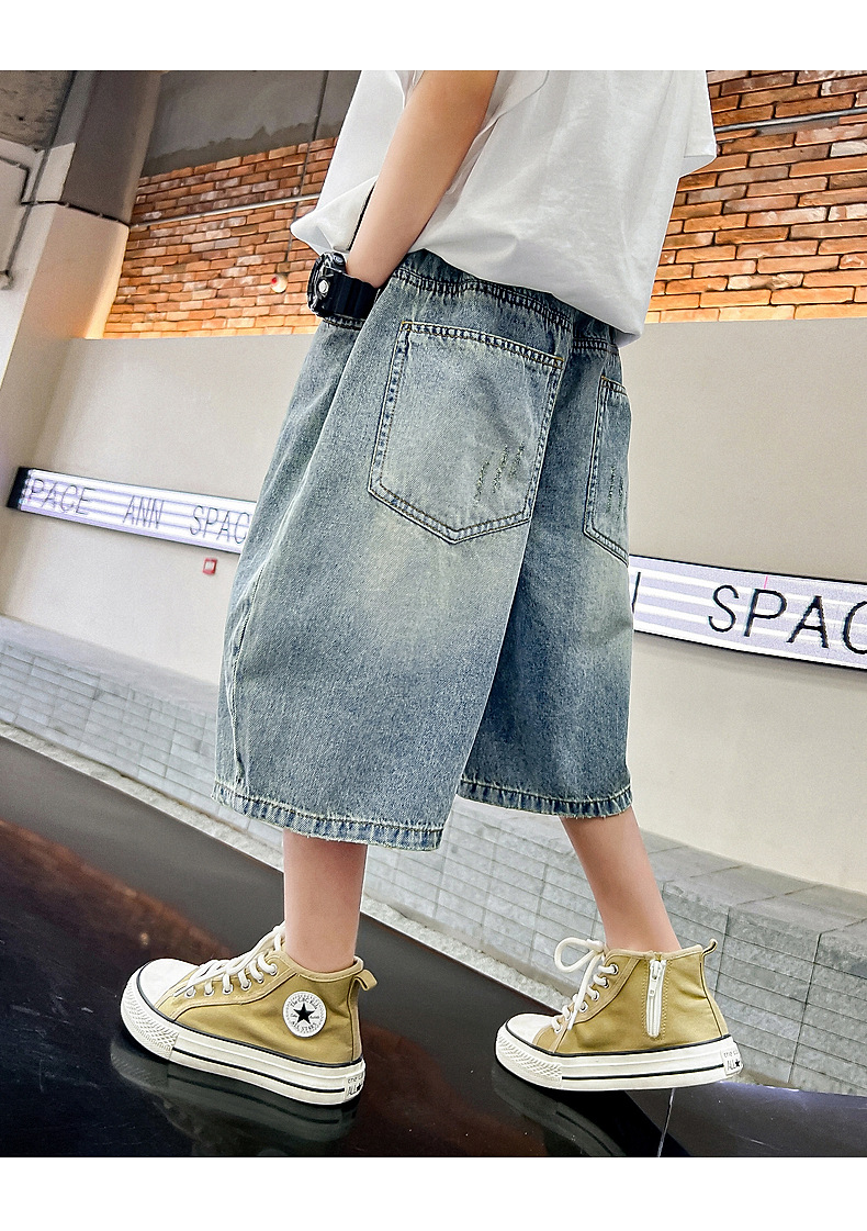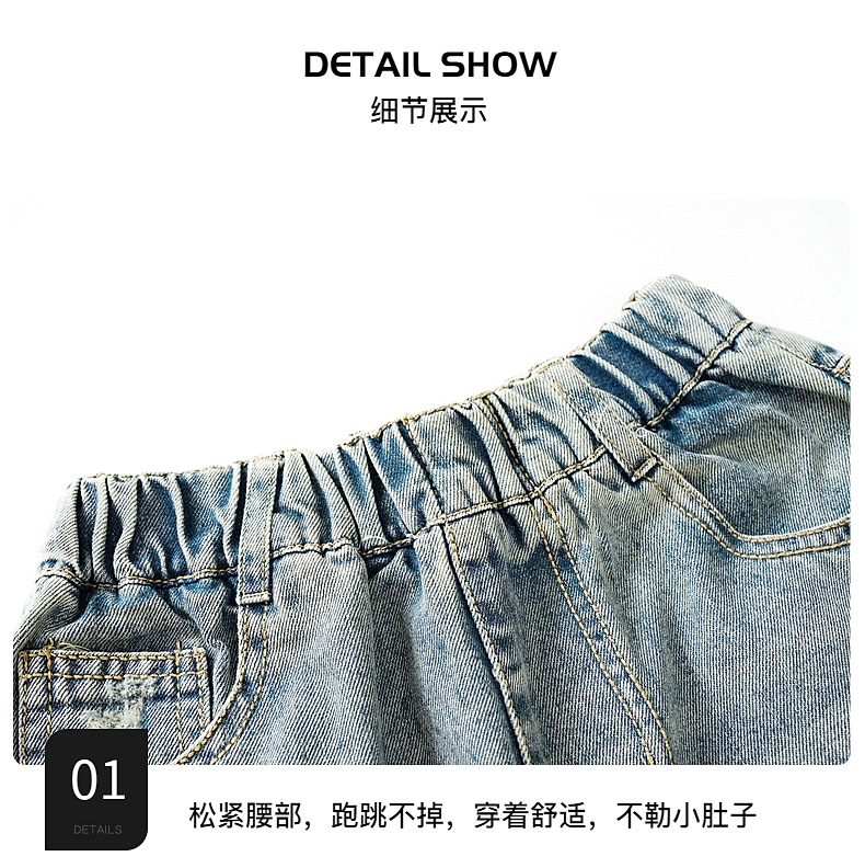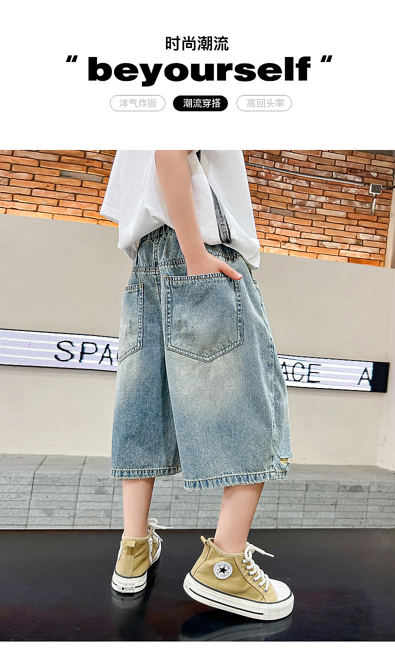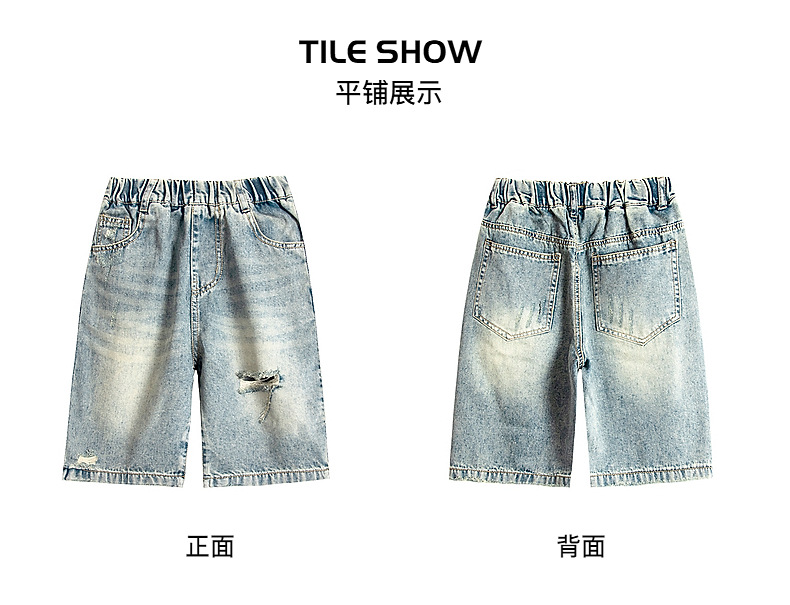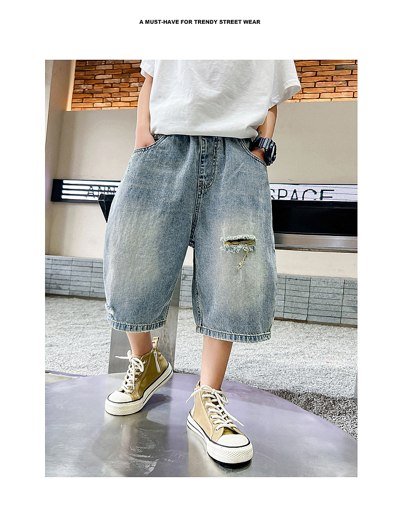 남아 트렌디 브랜드 데미지 데님 반바지 여름 2025년 신상 한국 스타일 아동용 멋스러운 중대형 아동 바지스토어 가기
