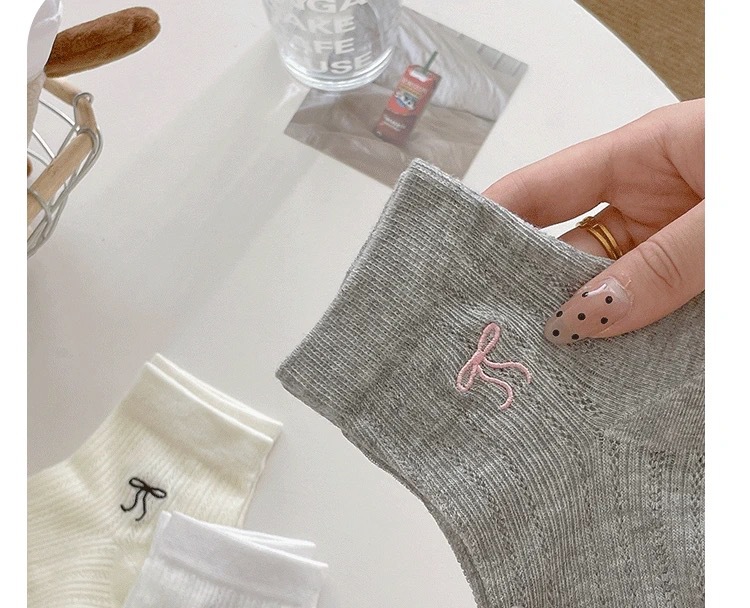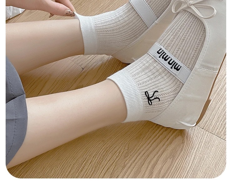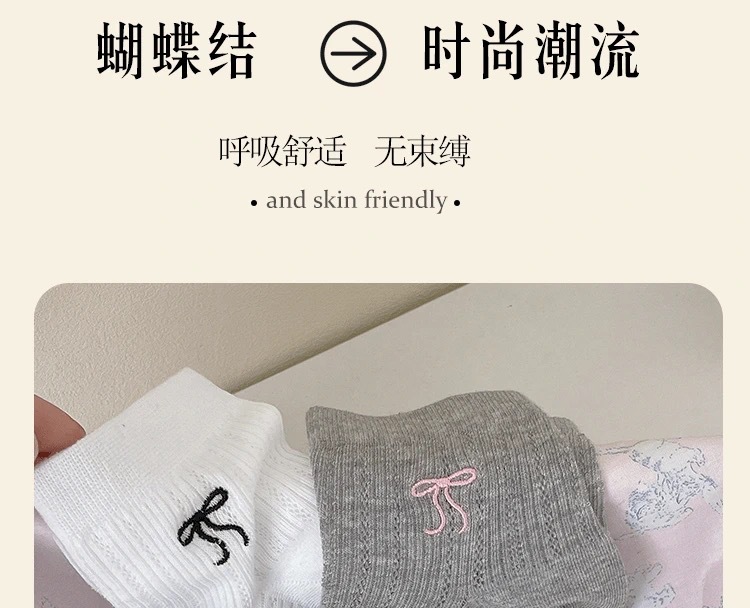 Miu 스타일 활 짧은 튜브 양말 중공 안티 필링 코튼 보트 양말 통기성 땀 흡수성 인 스타일 양말 여름 초박형 양말스토어 가기