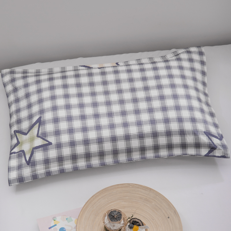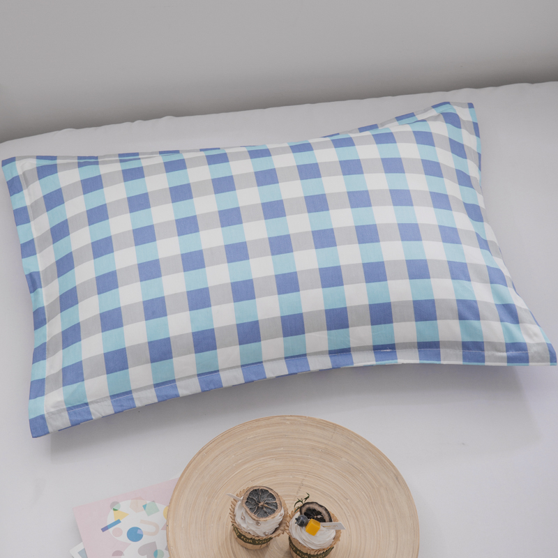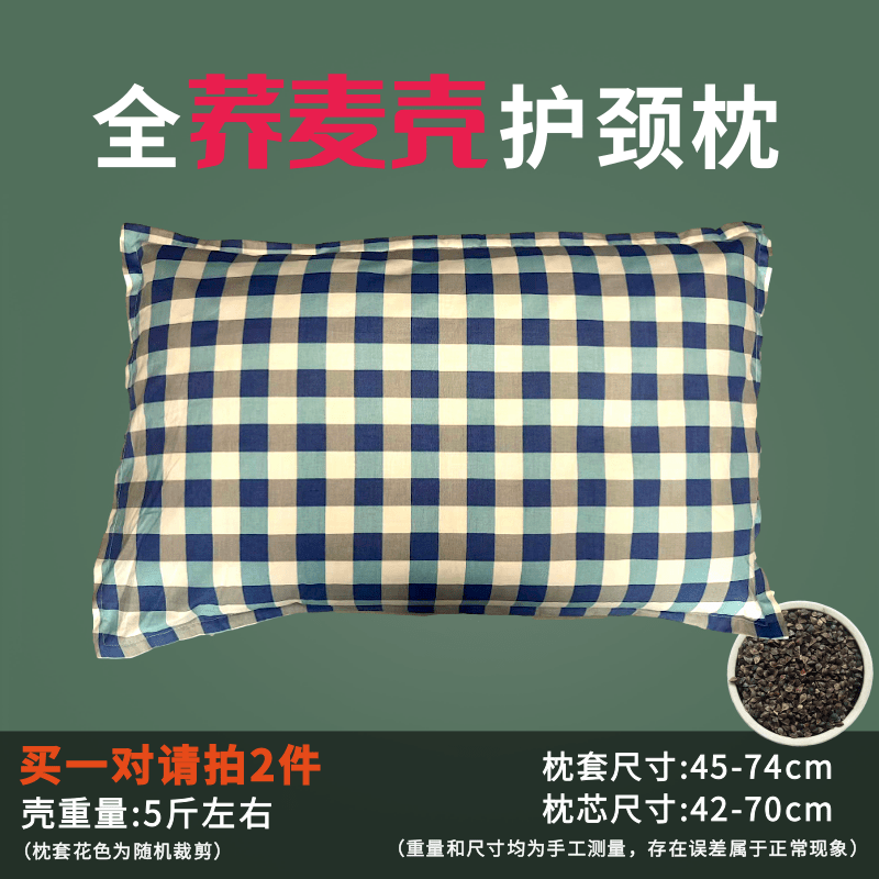 • ✷✯✯✯✯✷     2kg 익힌 껍질 + 더블 레이어 더블 지퍼 라이너 + 순면 40-60 베개 커버 블루 그리드 [중간 베개]✷✯✯✯✯✷
