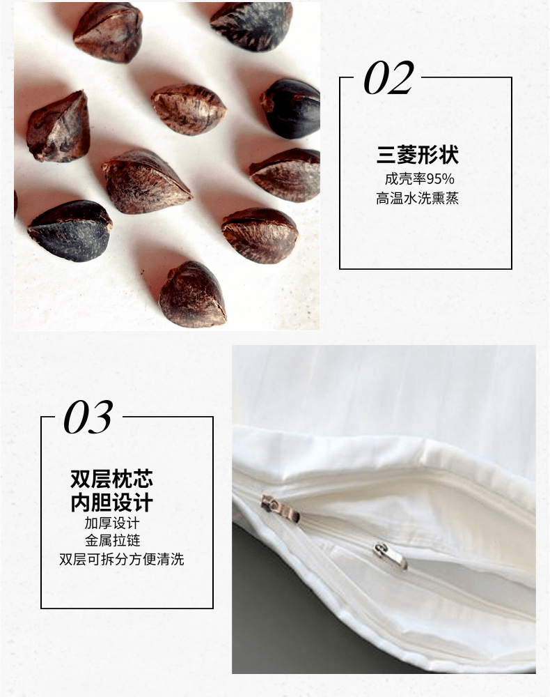 • ✷✯✯✯✯✷     2.5kg 조리된 쉘 42*70 순면 더블 레이어 지퍼 베개✷✯✯✯✯✷