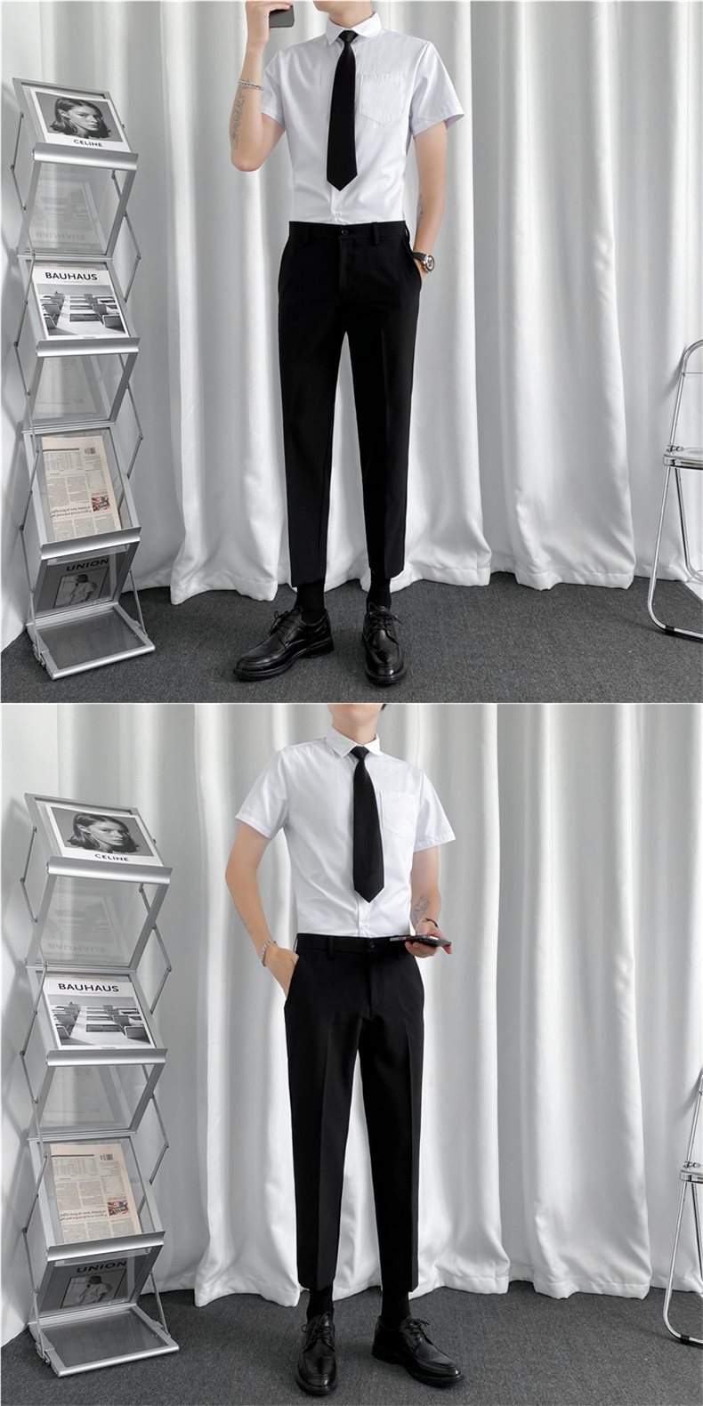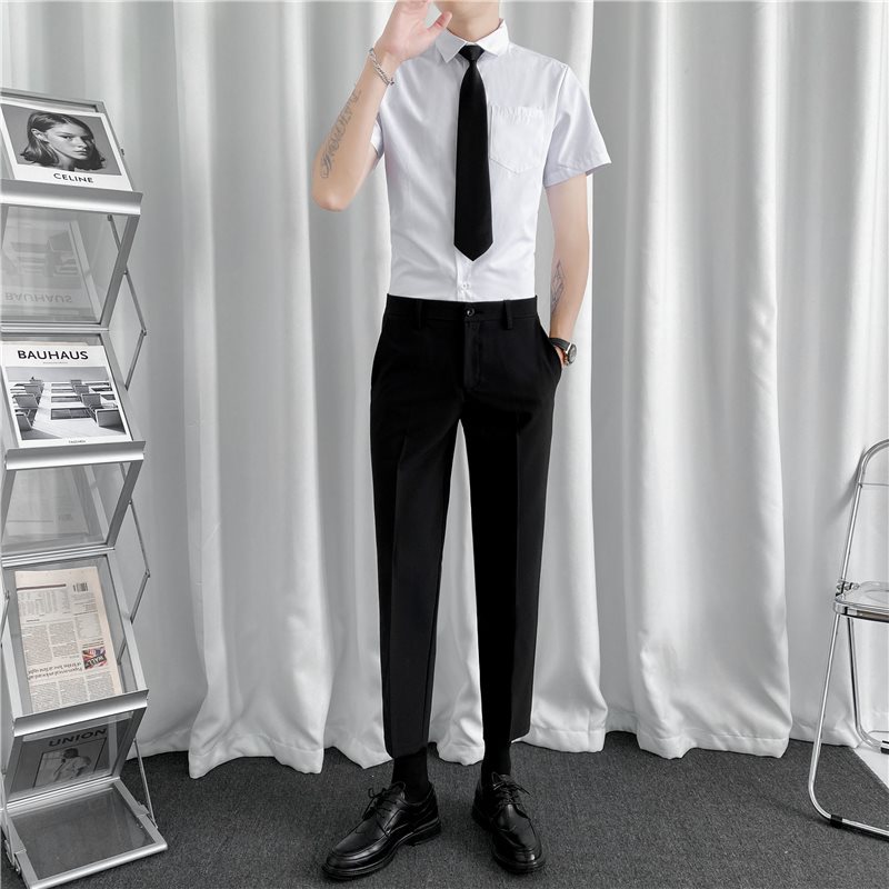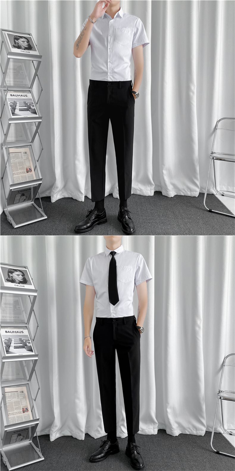 여름 새 남성 반팔 흰색 셔츠 플러스 바지 한 세트 전문 셔츠 잘 생긴 비즈니스 원피스 작업복