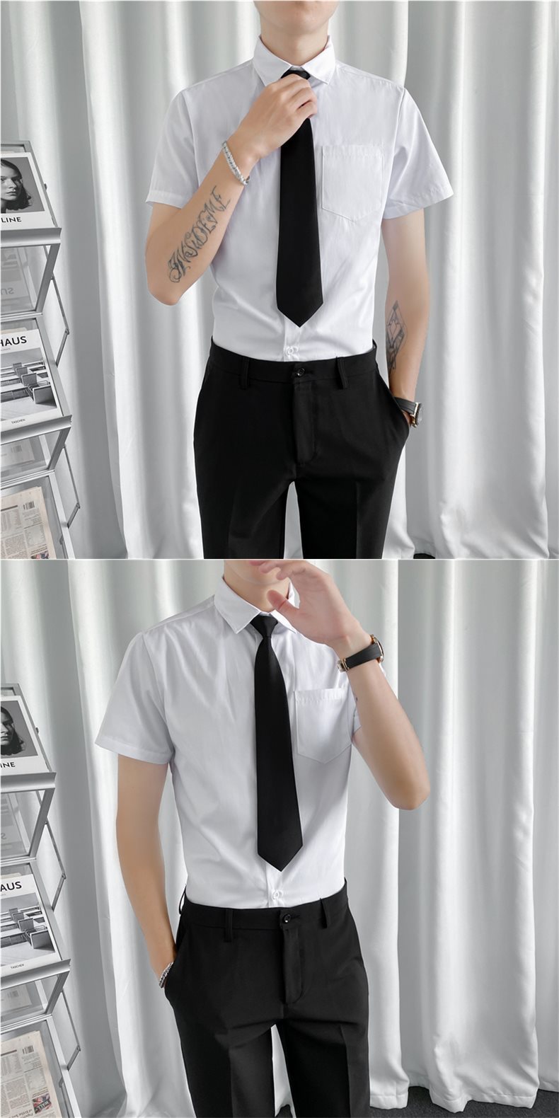 • 흰색 짧은 셔츠 검은 바지 넥타이