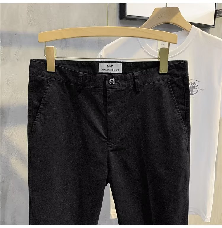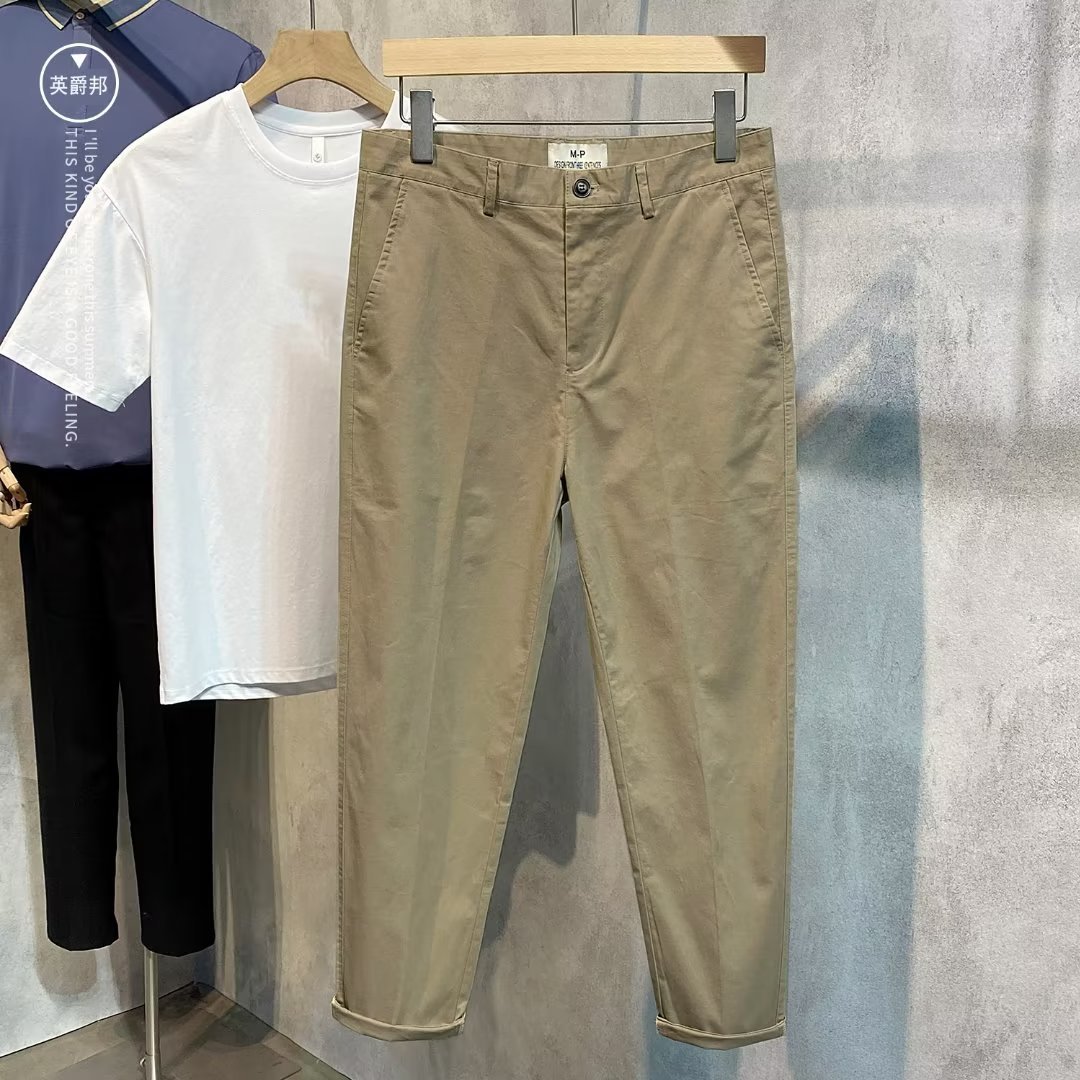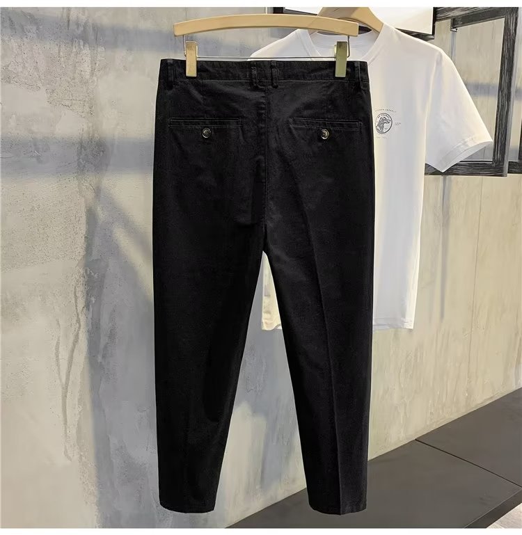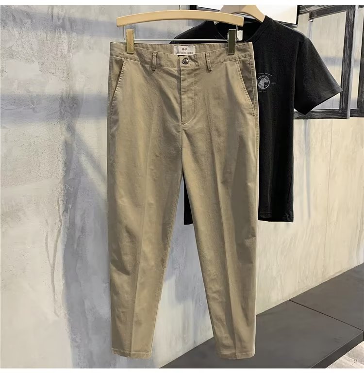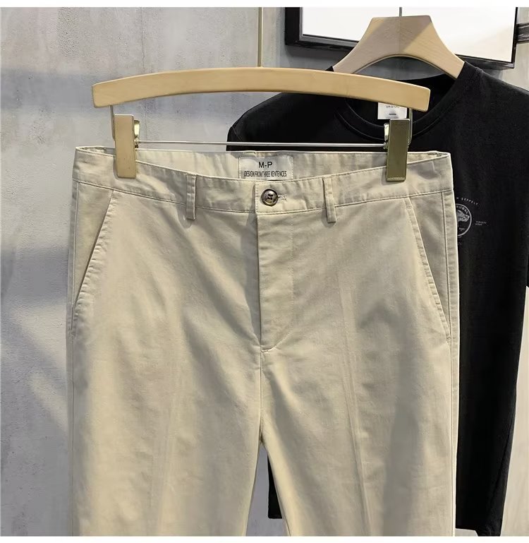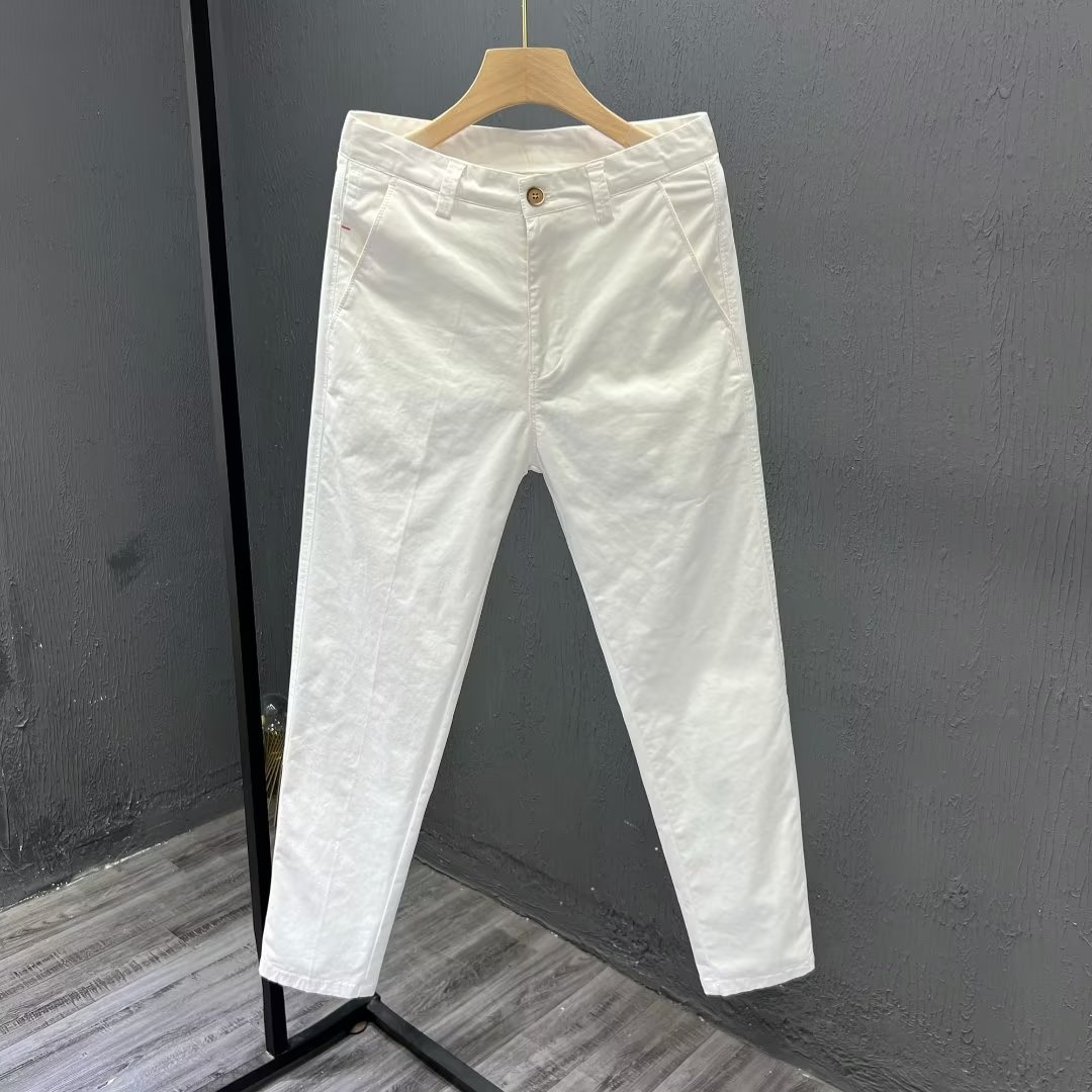 흰색 캐주얼 바지 남자의 여름 얇은 바지 작은 스트레이트 바지 간단한 봄과 가을 남자의 자른 바지 비즈니스 면 바지스토어 가기