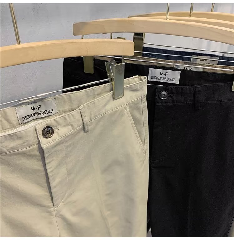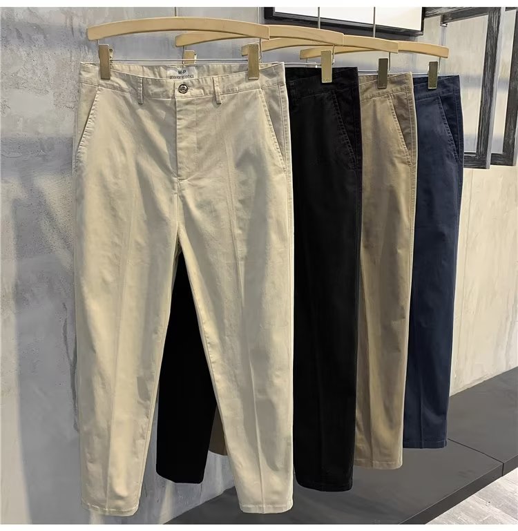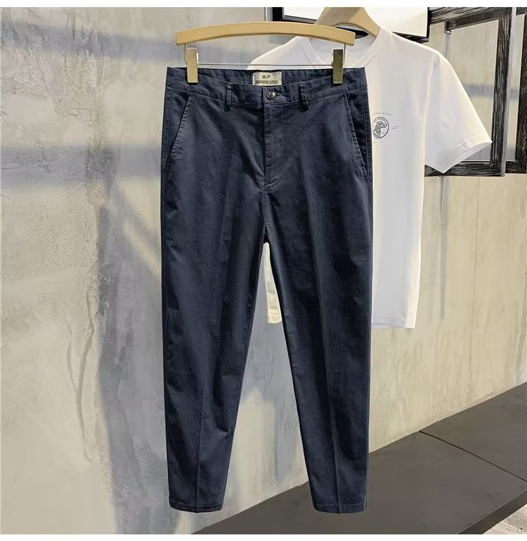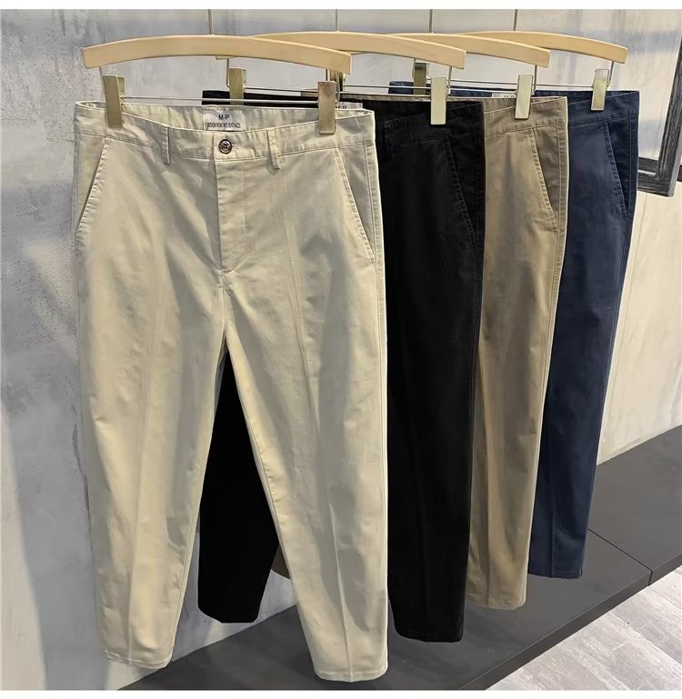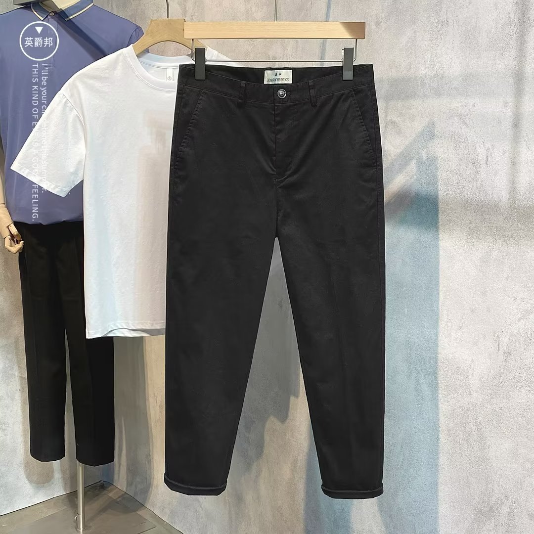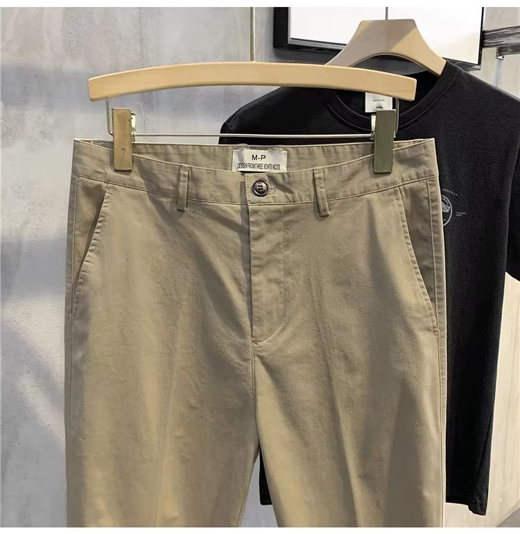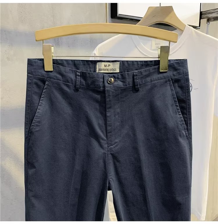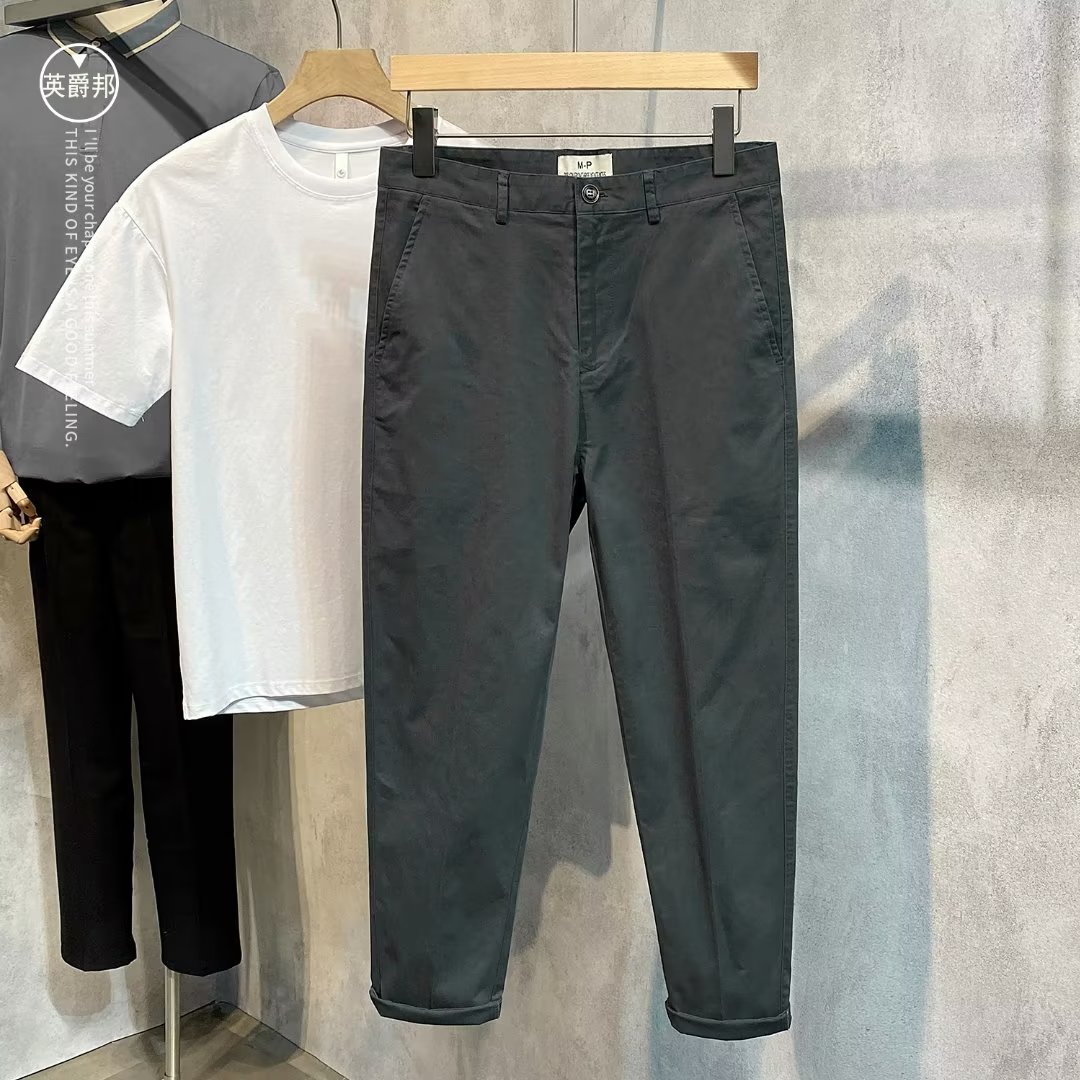 흰색 캐주얼 바지 남자의 여름 얇은 바지 작은 스트레이트 바지 간단한 봄과 가을 남자의 자른 바지 비즈니스 면 바지스토어 가기
