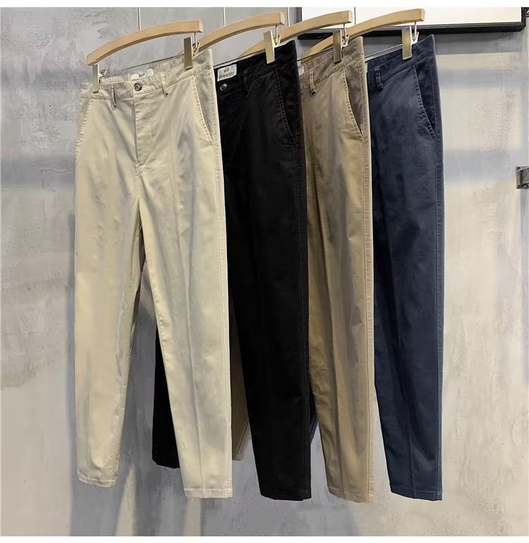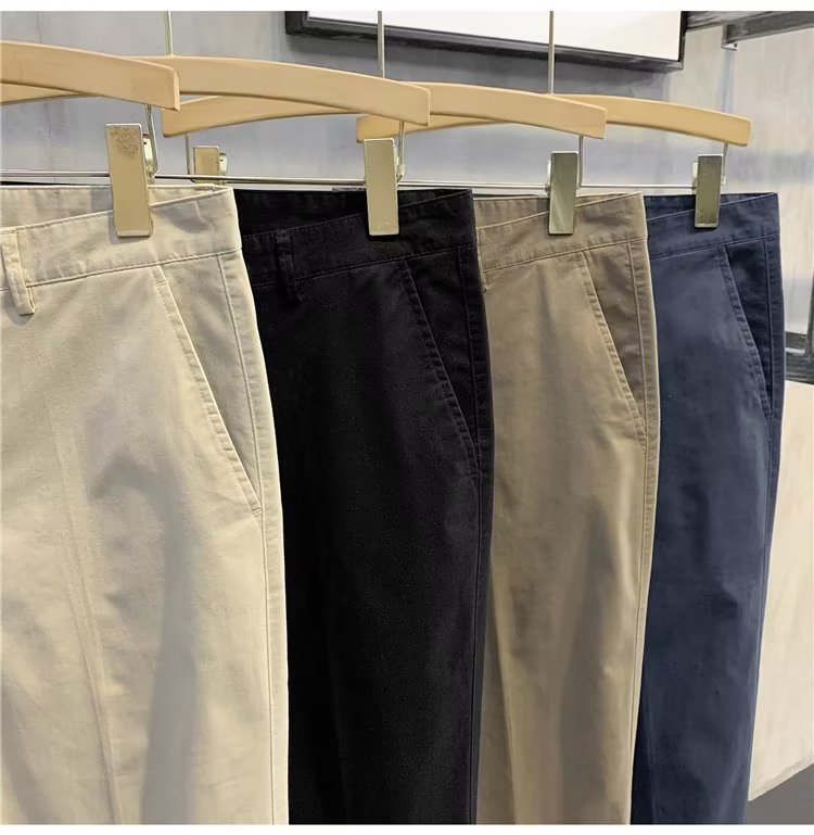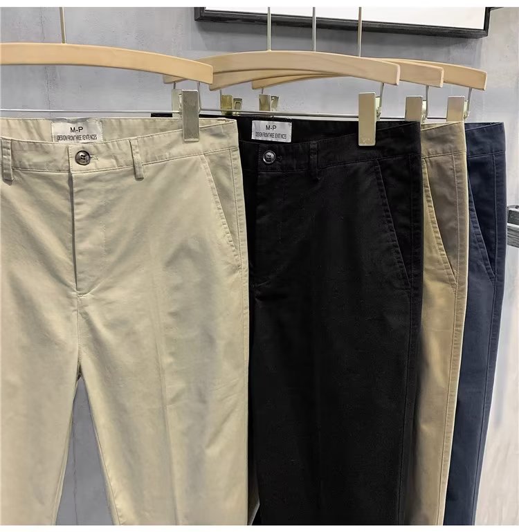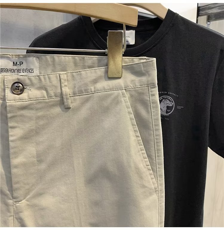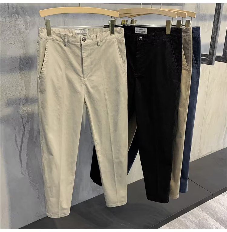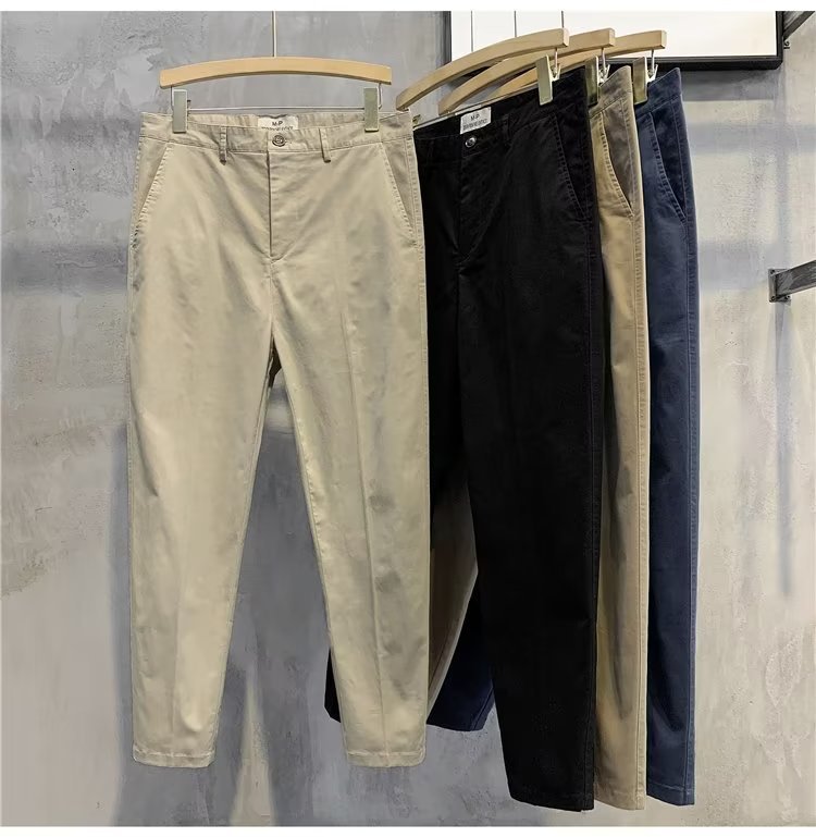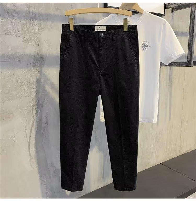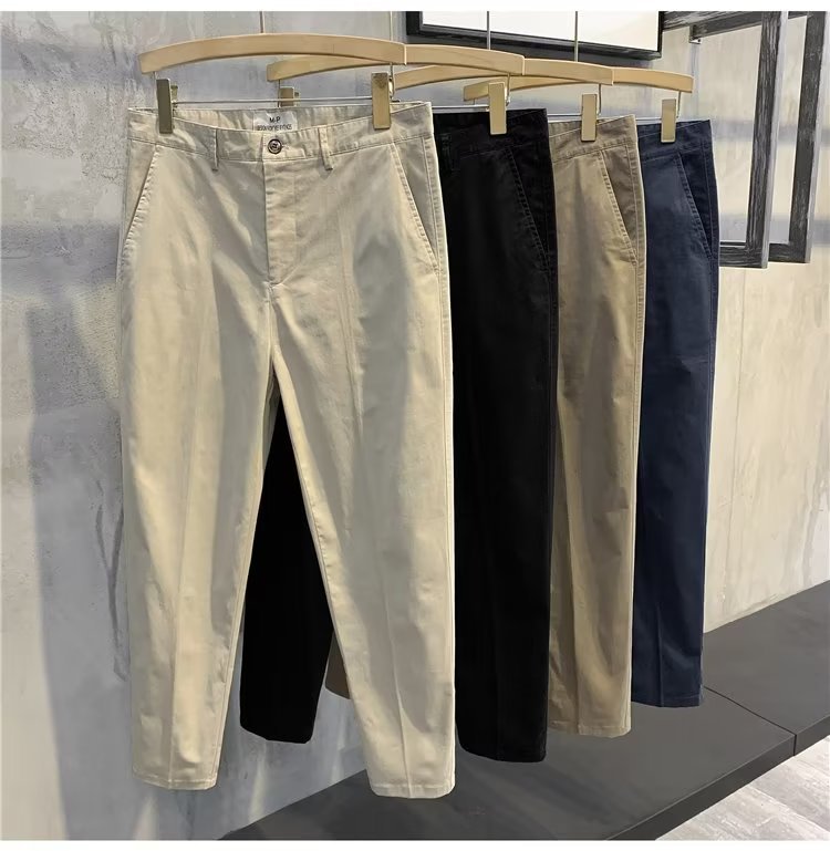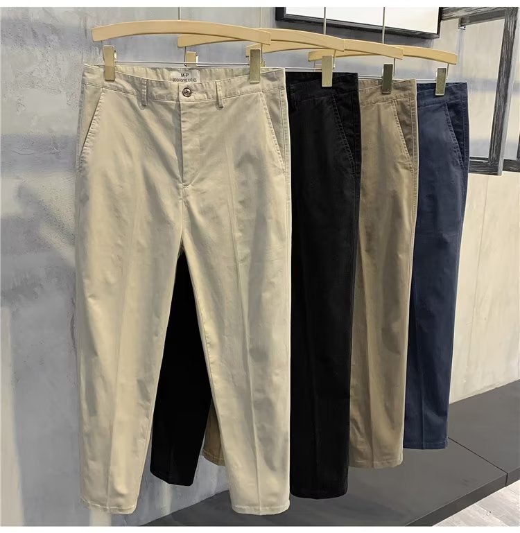 흰색 캐주얼 바지 남자의 여름 얇은 바지 작은 스트레이트 바지 간단한 봄과 가을 남자의 자른 바지 비즈니스 면 바지스토어 가기