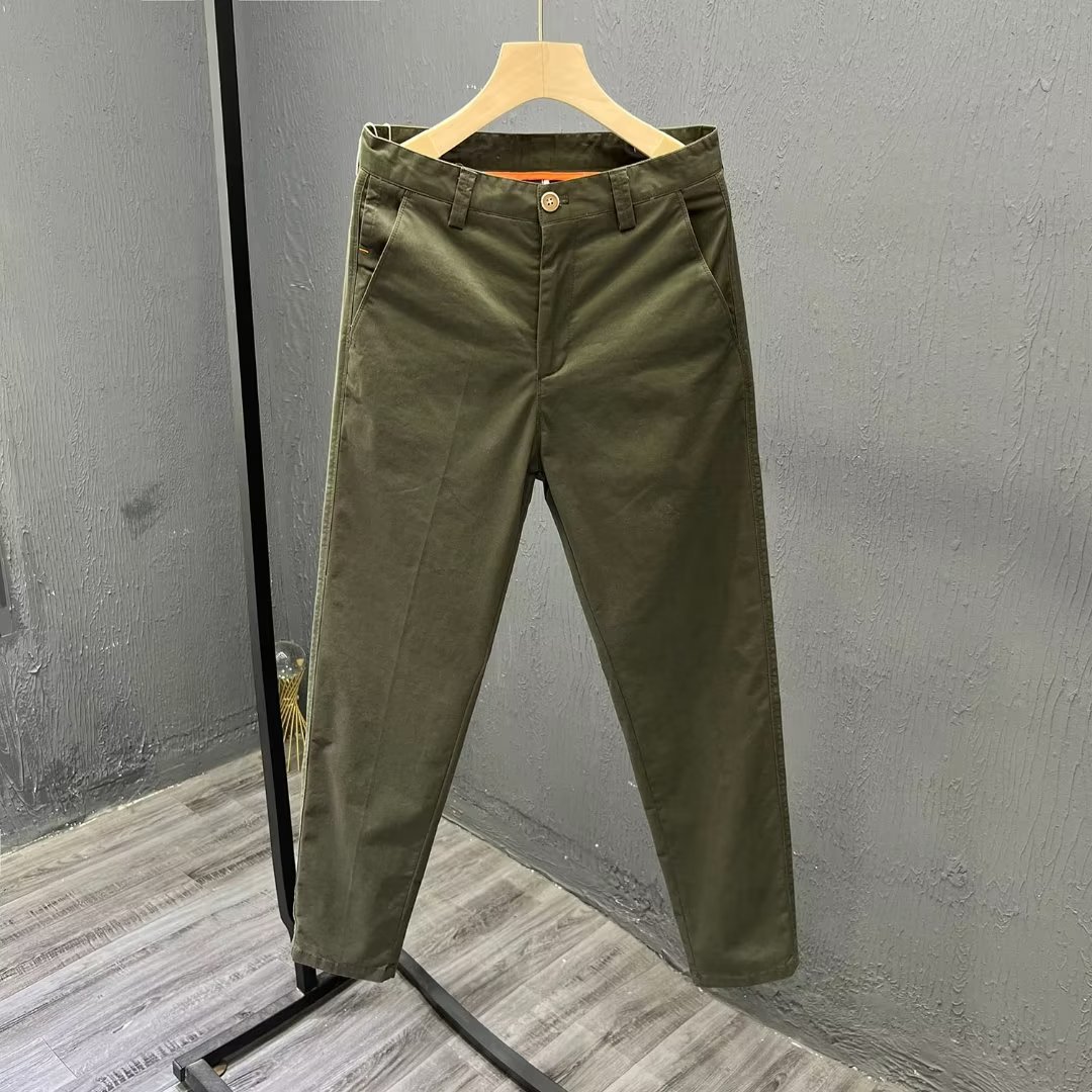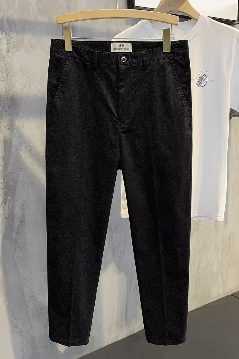 흰색 캐주얼 바지 남자의 여름 얇은 바지 작은 스트레이트 바지 간단한 봄과 가을 남자의 자른 바지 비즈니스 면 바지
