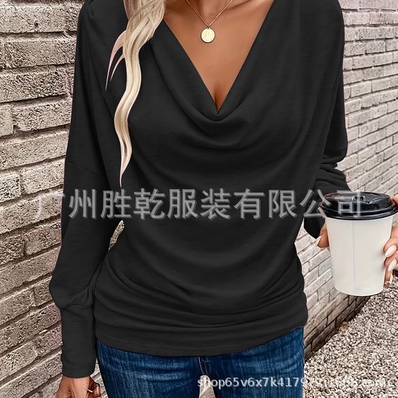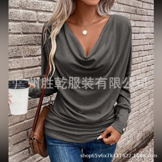 2024 새로운 국경 대외 무역 유럽과 미국 여성 재고 아마존 크루 넥 봄과 가을 긴 소매 인쇄 느슨한 땀