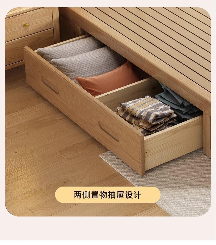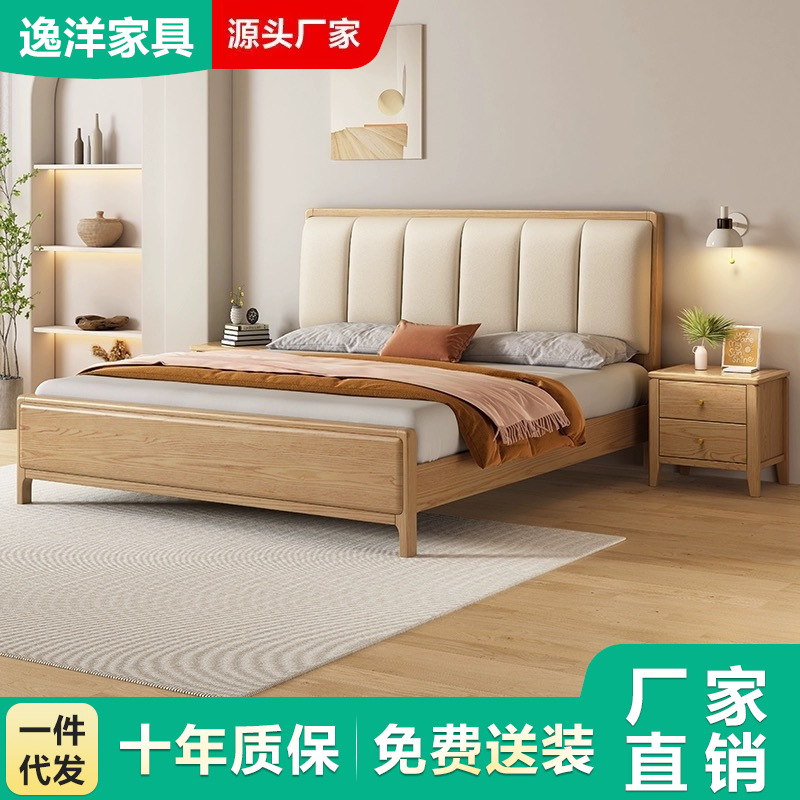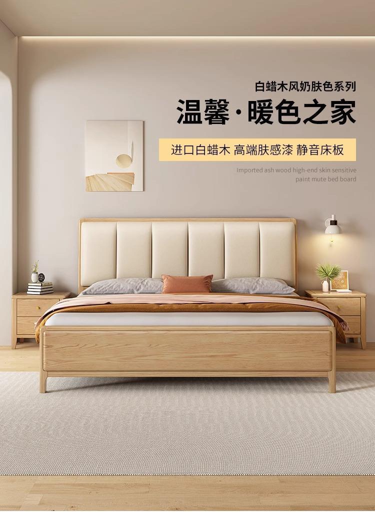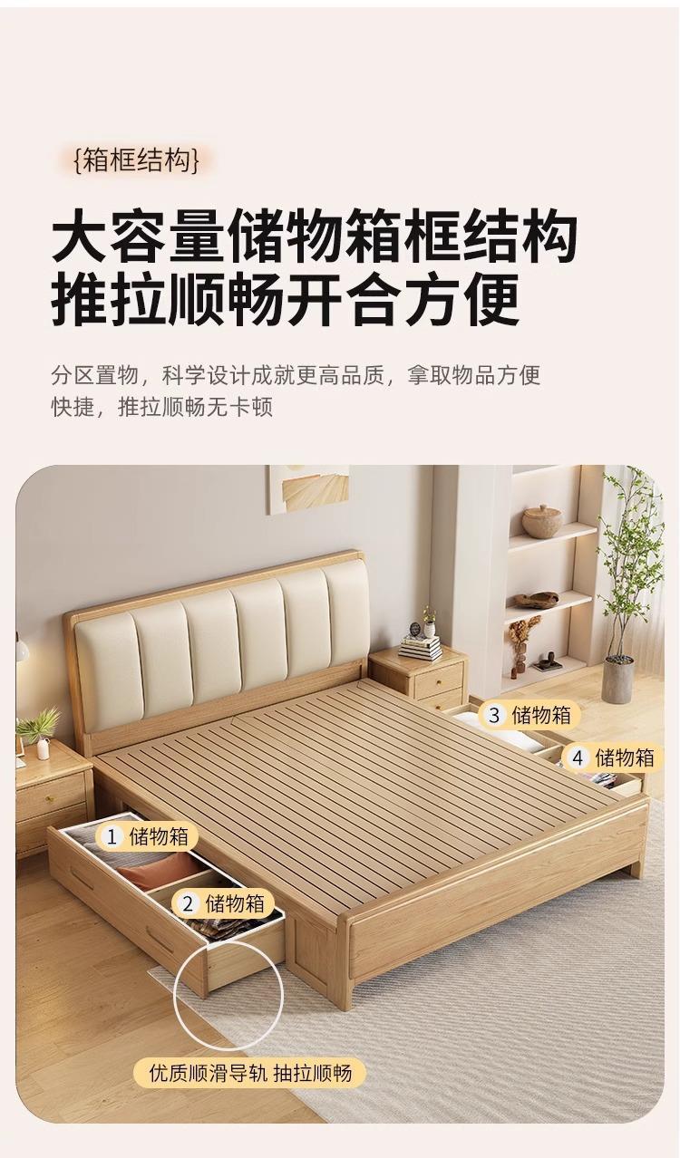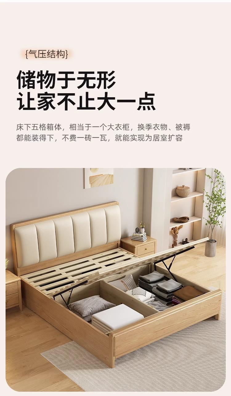 현대 간단한 재 나무 부드러운 침대 1.5 m 더블 침대 1.8 m 퀸 침대 높은 상자 저장 침실 가구스토어 가기