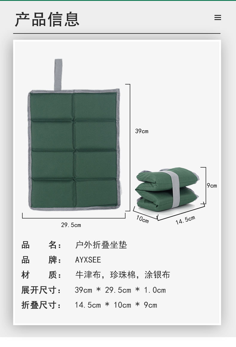 야외 600D 옥스포드 천 접는 쿠션 두꺼운 진주면 휴대용 접는 습기 방지 피크닉 시트 쿠션스토어 가기