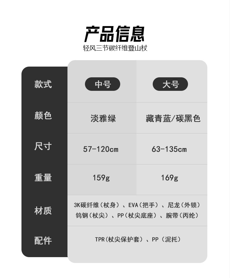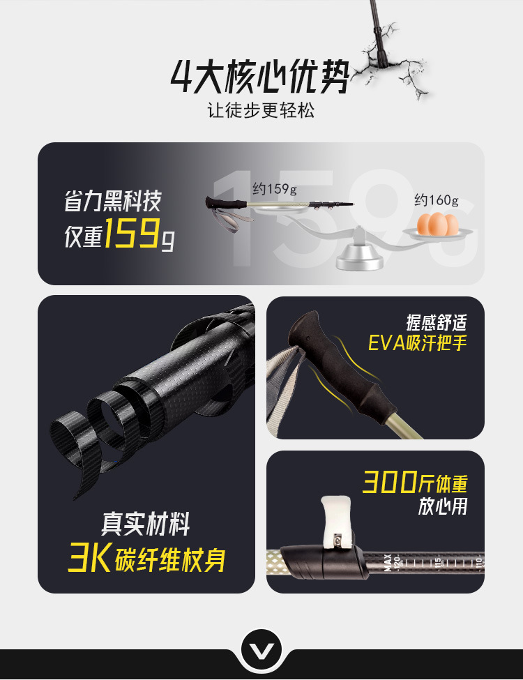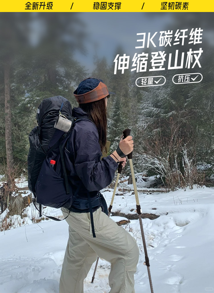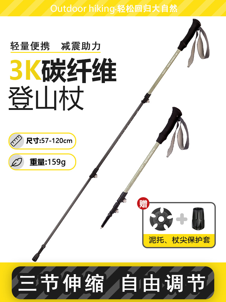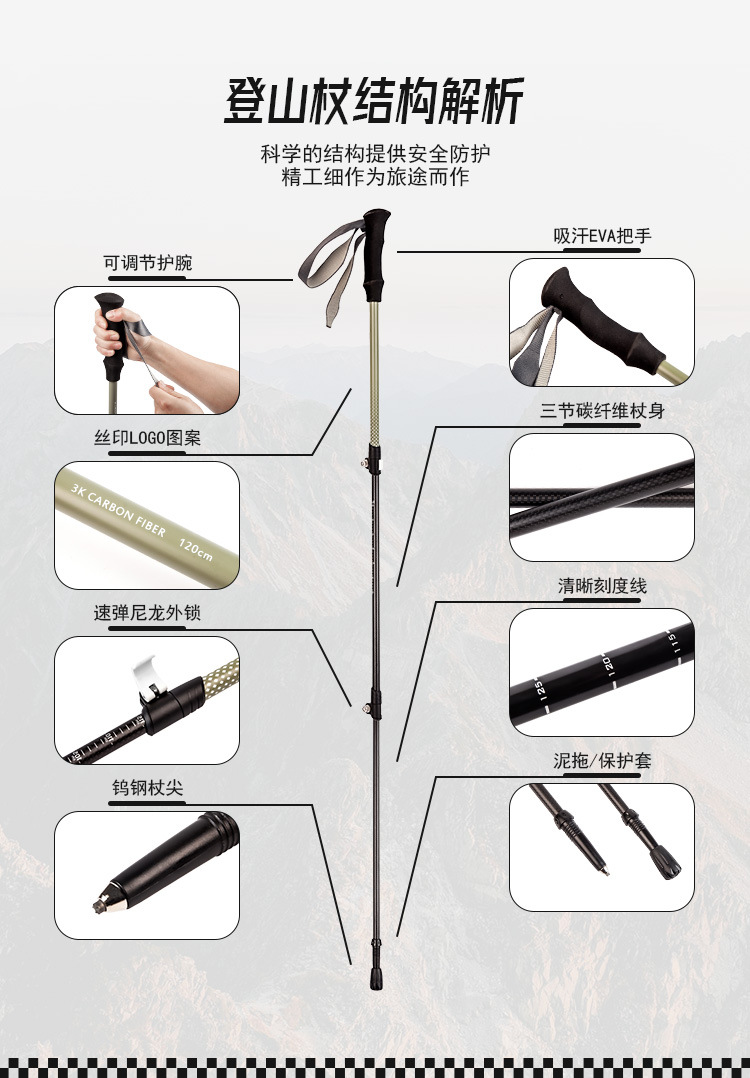 탄소 섬유 등반 스틱 3K 탄소 초경량 망원경 등반 장비 전문 야외 하이킹 노인을위한 미끄럼 방지 워킹 스틱