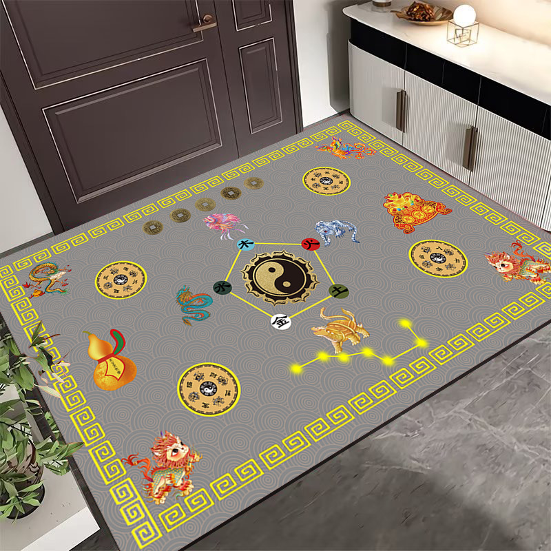 5 요소 바닥 매트 5 황제 돈 7 성급 문 카펫 먼지 방지 바닥 매트 고무 바닥 외부 전통적인 풍수 문을 관리하기 쉽습니다.