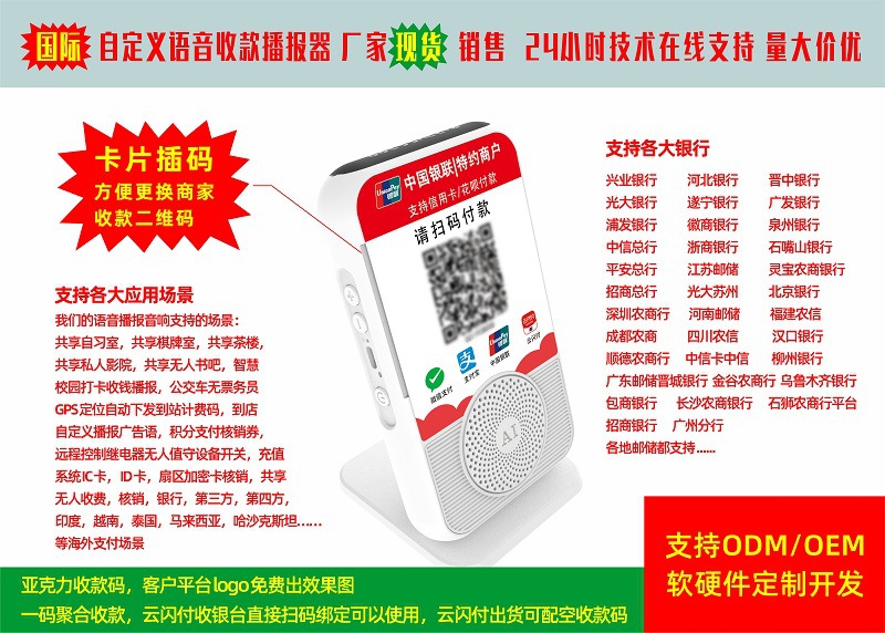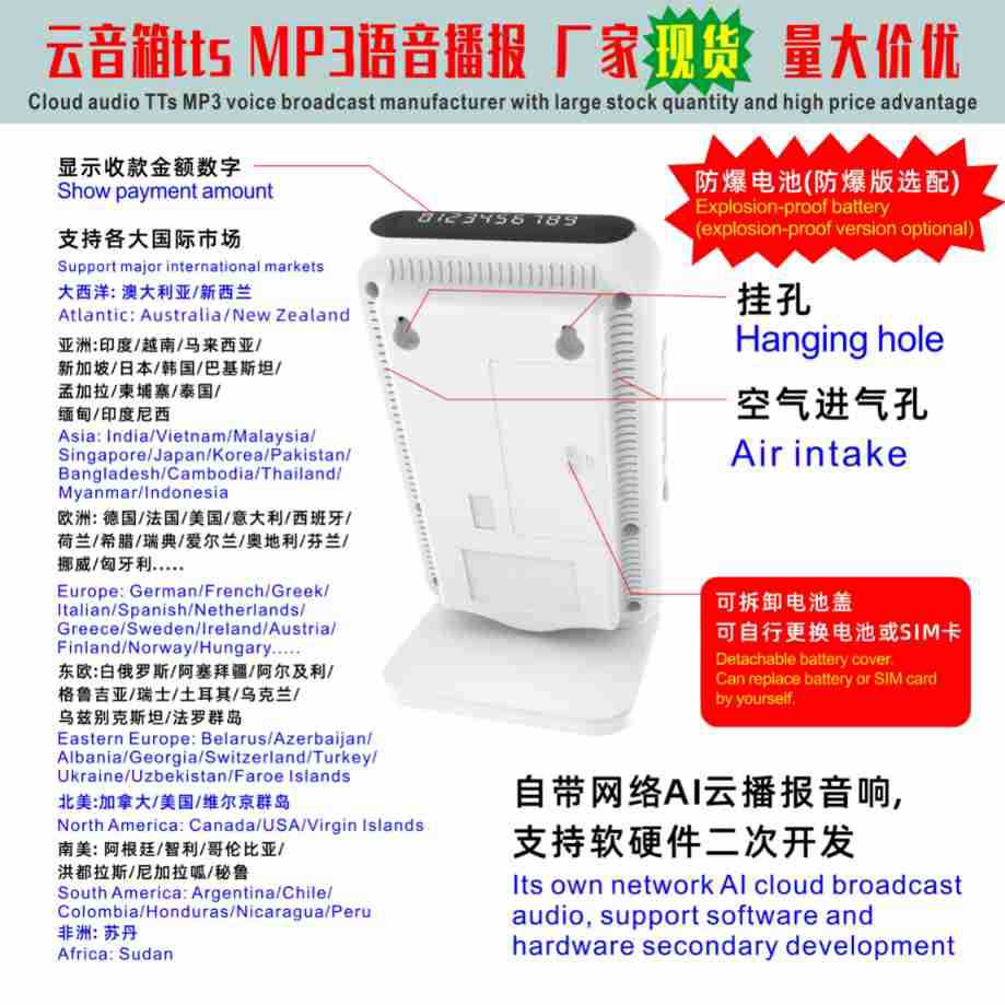收款码语音播放器 语音播报器音响 二维码收款云音箱 收款语音播放器 支持二次开发收款音箱 收付音响 云喇叭二次开发 云喇叭音箱 云播报音箱 收款音箱厂家 二次开发云喇叭 扫码支付盒子 广播喇叭 定点定时播放器 扫码盒 扫码支付 收钱扫码机音响 4G收款码音箱 4g云喇叭方案 语音音响 云喇叭 云音箱充电线云音箱 tts 收款音响对接 4g语音音箱二次开发 云喇叭对接 定制收款码带音响 4g云喇叭二次 云音响支持二次开发 云音响二次开发 4g云喇叭语音播报器 扫码盒子厂家 收款音响 云喇叭播报 4g云喇叭云音响tts mqtt音箱 云喇叭动态二维码 4g云喇叭主板 收款机
