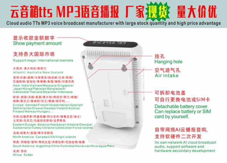 开发支付系统 小程序源码 云服务开发 软件开发 二维码开发 语音播报方案 CPS小程序 wifi收款音箱播报器板 4g云喇叭语音播报音箱 开发支付系统 云喇叭 二次开发 刷脸支付系统 语音播报方案 4G开发版 4G版收款音响 tts语音播报音响 tts云音箱 4g收款云音响 云音箱 语音模块串口 收款码语音播放器 二维码收钱喇叭智能终端 插座 二次开发 收款码。播报 自带网络收钱音响语音播报 国外银行收款码播报音箱 微收款音响 云喇叭 扫码支付 4G云喇叭收款提醒 云音箱 收银支付